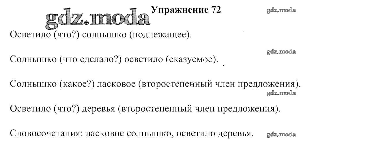 ГДЗ решение к заданию № 72 Русский язык 3 класс Антипова М. Б. Сэр-Вит 2019 Часть 1, Часть 2 ФГОС бесплатно на гдз.мода!