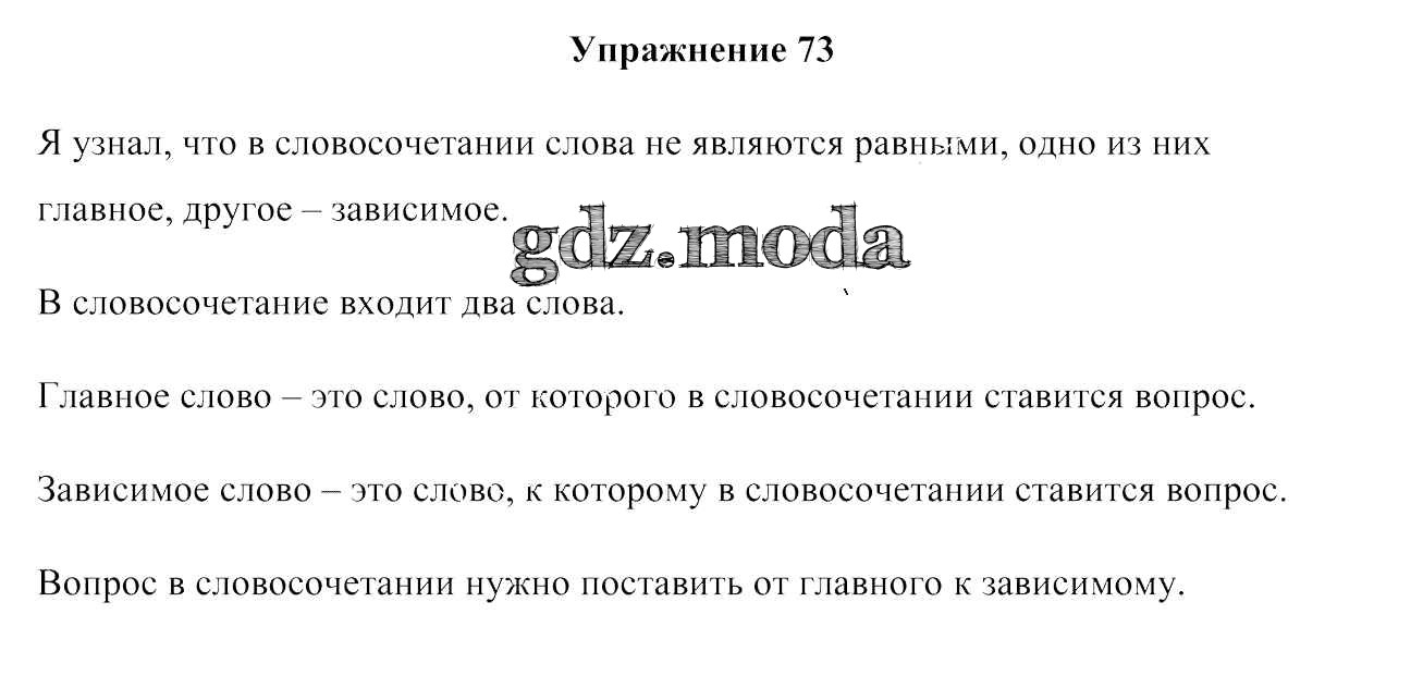 ГДЗ решение к заданию № 73 Русский язык 3 класс Антипова М. Б. Сэр-Вит 2019 Часть 1, Часть 2 ФГОС бесплатно на гдз.мода!