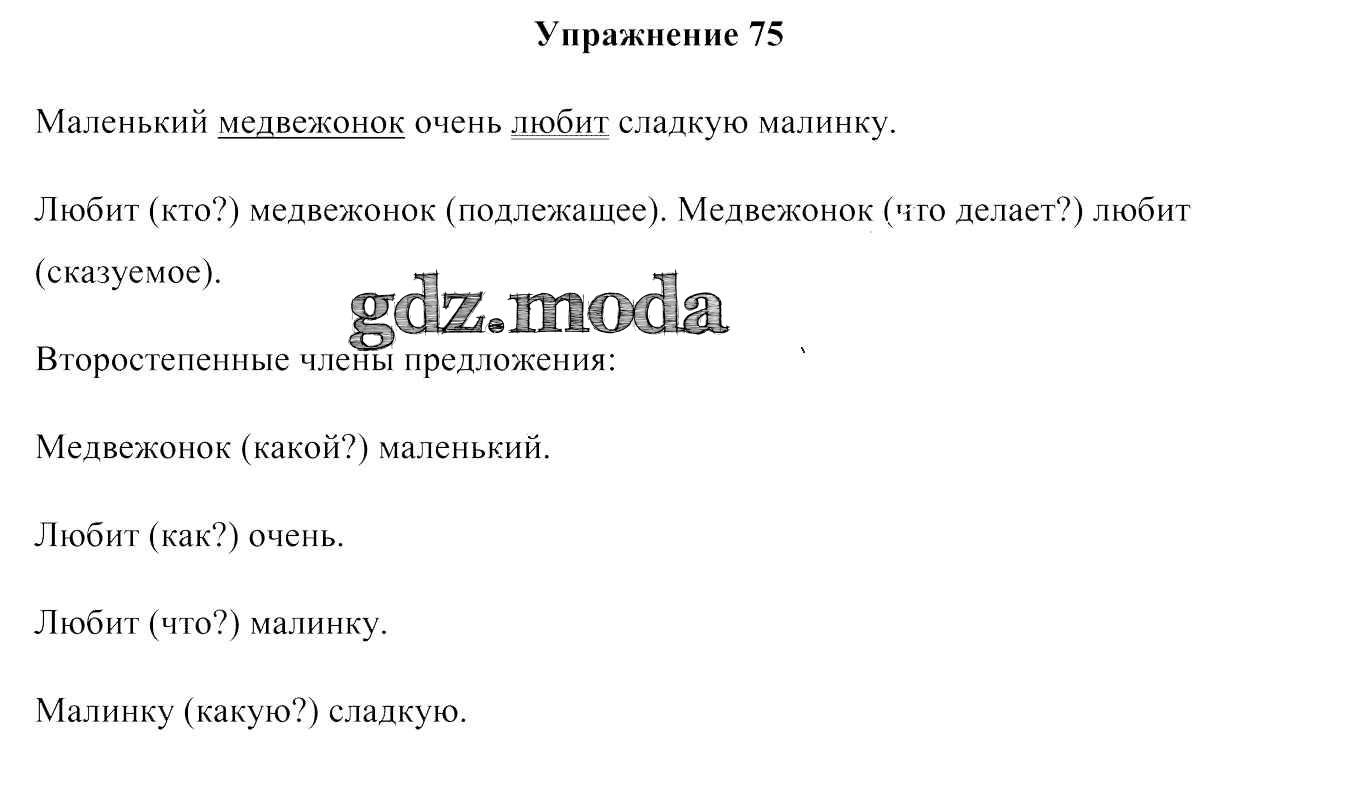 ГДЗ решение к заданию № 75 Русский язык 3 класс Антипова М. Б. Сэр-Вит 2019 Часть 1, Часть 2 ФГОС бесплатно на гдз.мода!