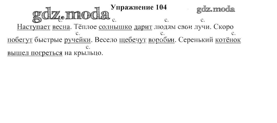 ГДЗ решение к заданию № 104 Русский язык 3 класс Антипова М. Б. Сэр-Вит 2019 Часть 1, Часть 2 ФГОС бесплатно на гдз.мода!