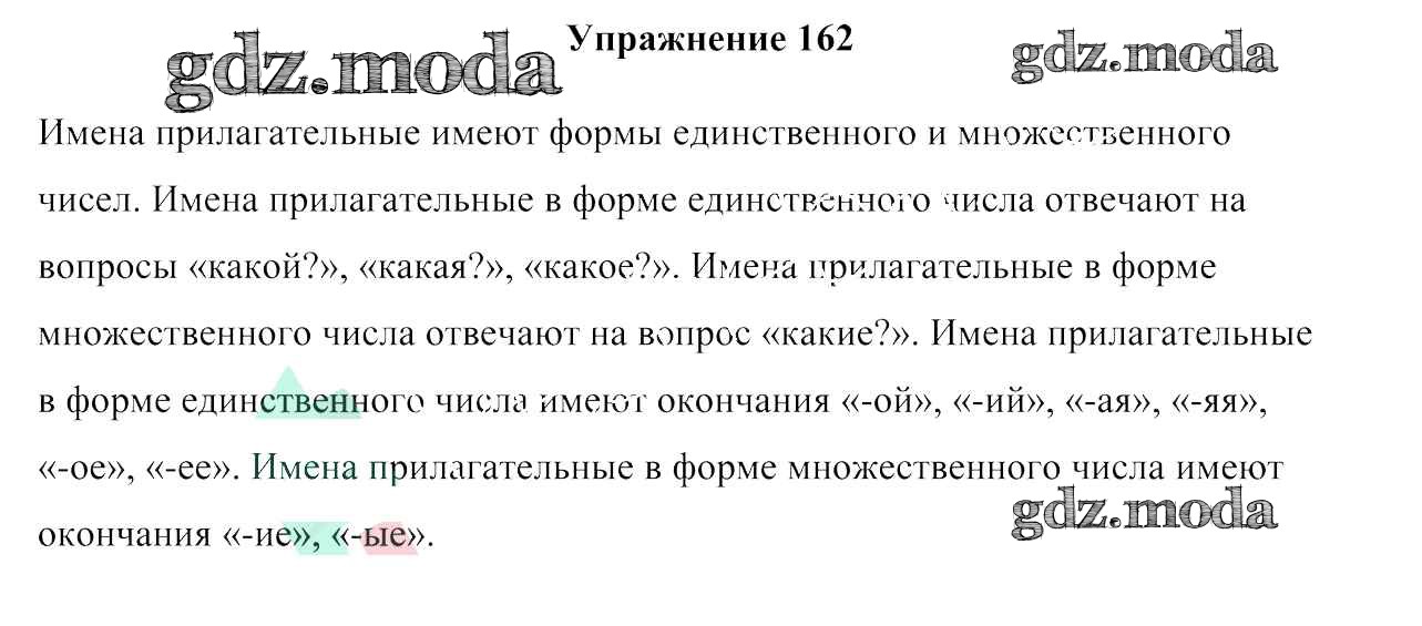 ОТВЕТ на задание № 162 Учебник по Русскому языку 3 класс Антипова
