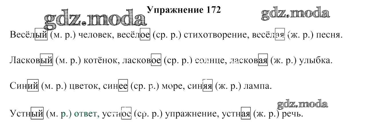 ГДЗ решение к заданию № 172 Русский язык 3 класс Антипова М. Б. Сэр-Вит 2019 Часть 1, Часть 2 ФГОС бесплатно на гдз.мода!