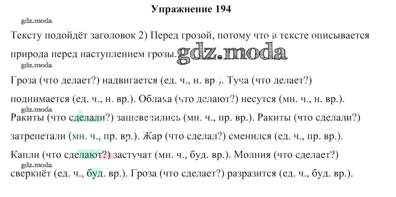 ГДЗ решение к заданию № 194 Русский язык 3 класс Антипова М. Б. Сэр-Вит 2019 Часть 1, Часть 2 ФГОС бесплатно на гдз.мода!