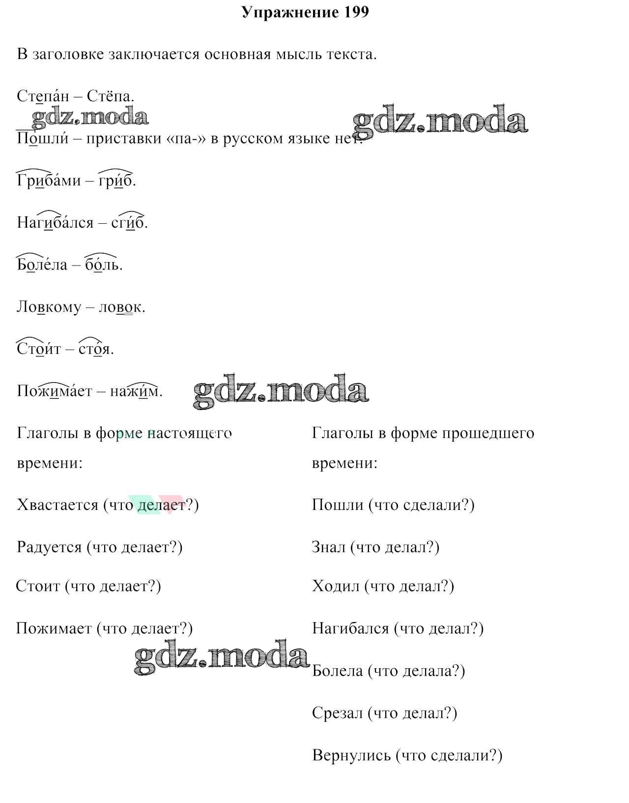 ГДЗ решение к заданию № 199 Русский язык 3 класс Антипова М. Б. Сэр-Вит 2019 Часть 1, Часть 2 ФГОС бесплатно на гдз.мода!