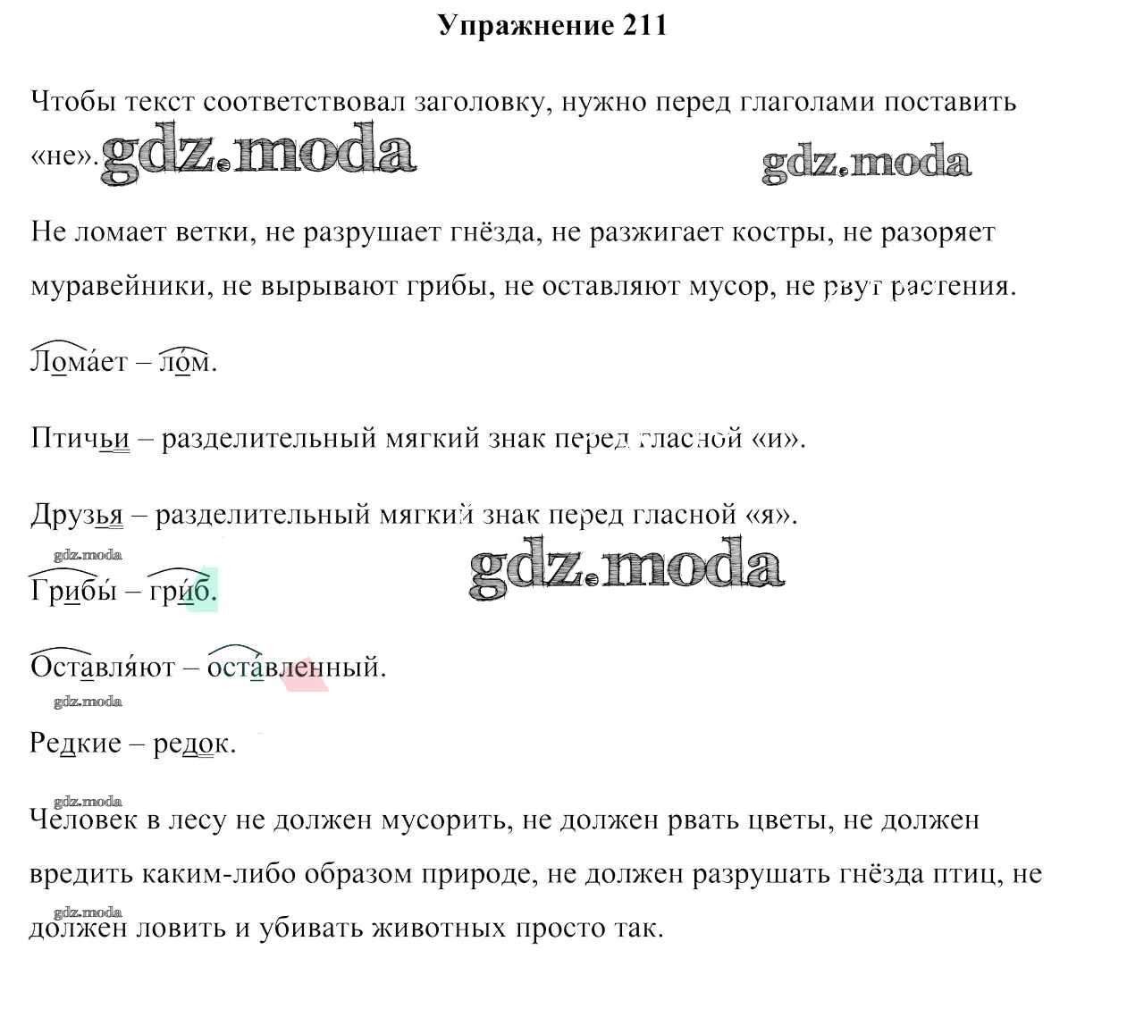 ГДЗ решение к заданию № 211 Русский язык 3 класс Антипова М. Б. Сэр-Вит 2019 Часть 1, Часть 2 ФГОС бесплатно на гдз.мода!
