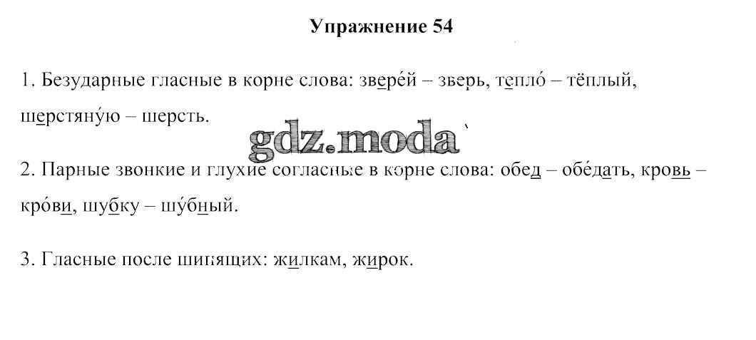 ГДЗ решение к заданию № 54 Русский язык 3 класс Антипова М. Б. Сэр-Вит 2019 Часть 1, Часть 2 ФГОС бесплатно на гдз.мода!