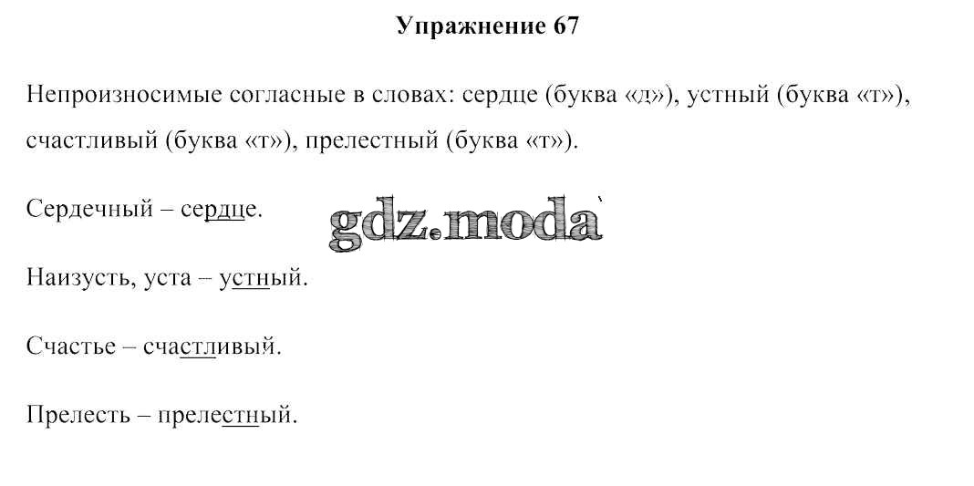 ГДЗ решение к заданию № 67 Русский язык 3 класс Антипова М. Б. Сэр-Вит 2019 Часть 1, Часть 2 ФГОС бесплатно на гдз.мода!