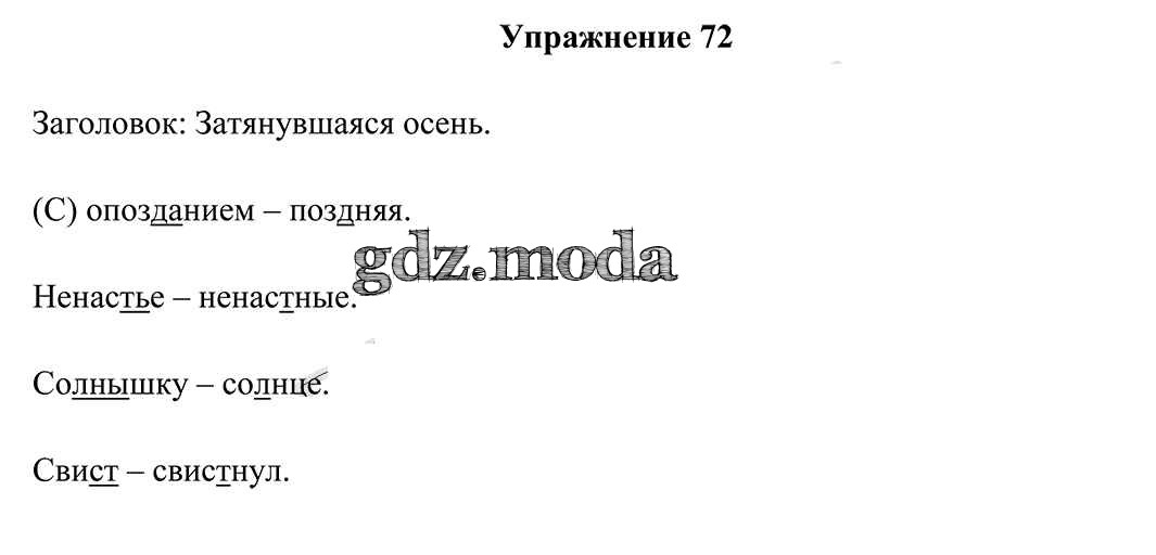 ГДЗ решение к заданию № 72 Русский язык 3 класс Антипова М. Б. Сэр-Вит 2019 Часть 1, Часть 2 ФГОС бесплатно на гдз.мода!