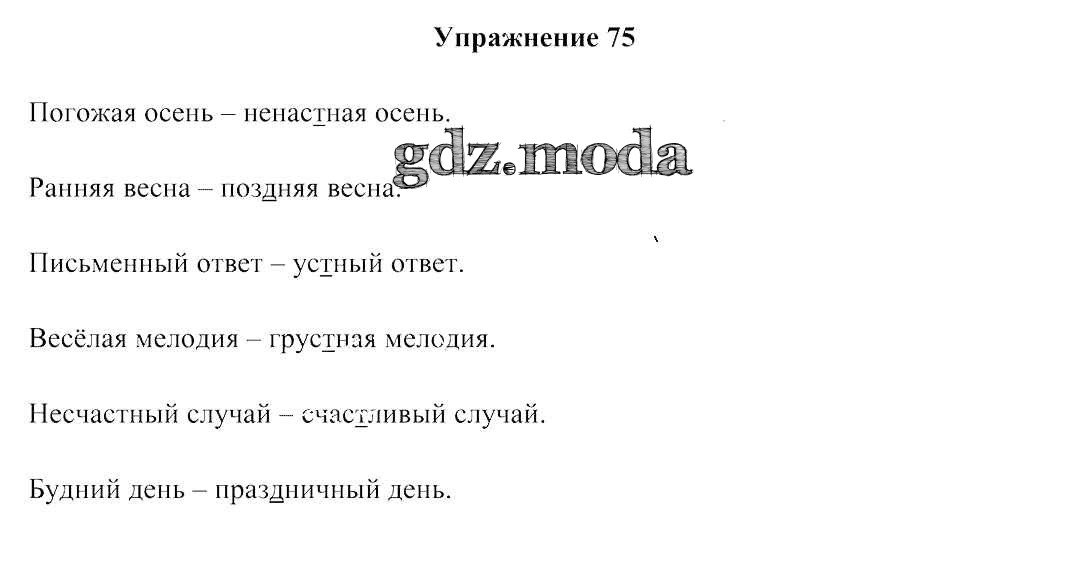 ГДЗ решение к заданию № 75 Русский язык 3 класс Антипова М. Б. Сэр-Вит 2019 Часть 1, Часть 2 ФГОС бесплатно на гдз.мода!