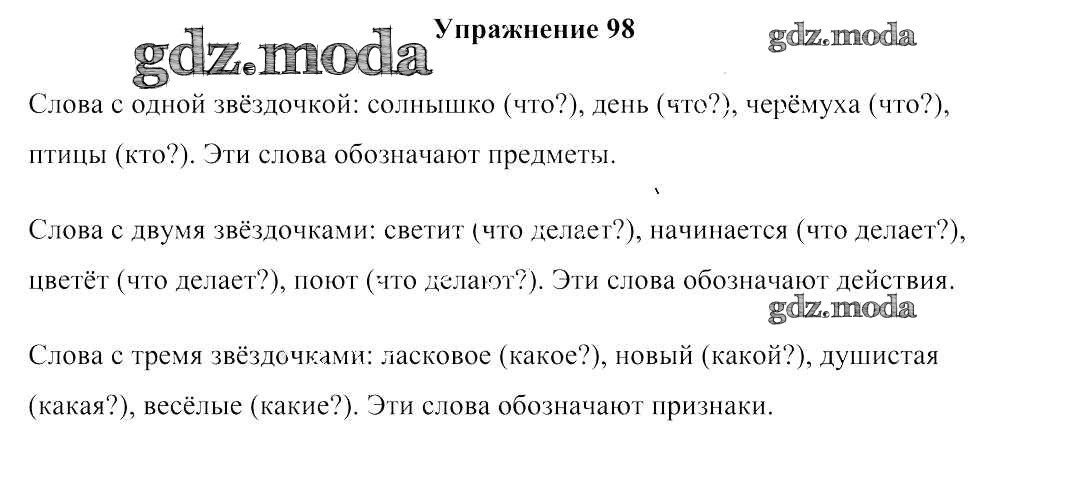 ГДЗ решение к заданию № 98 Русский язык 3 класс Антипова М. Б. Сэр-Вит 2019 Часть 1, Часть 2 ФГОС бесплатно на гдз.мода!