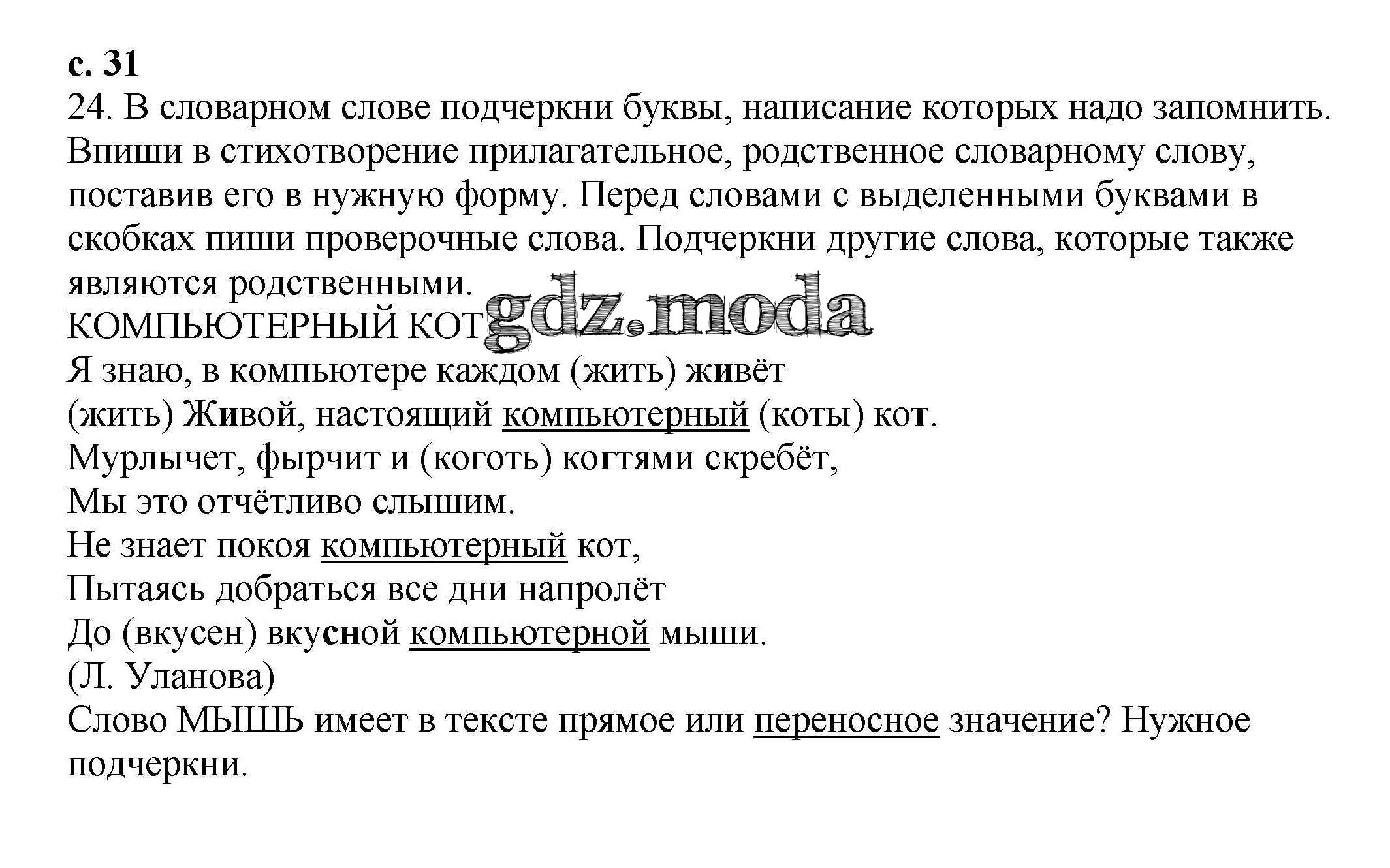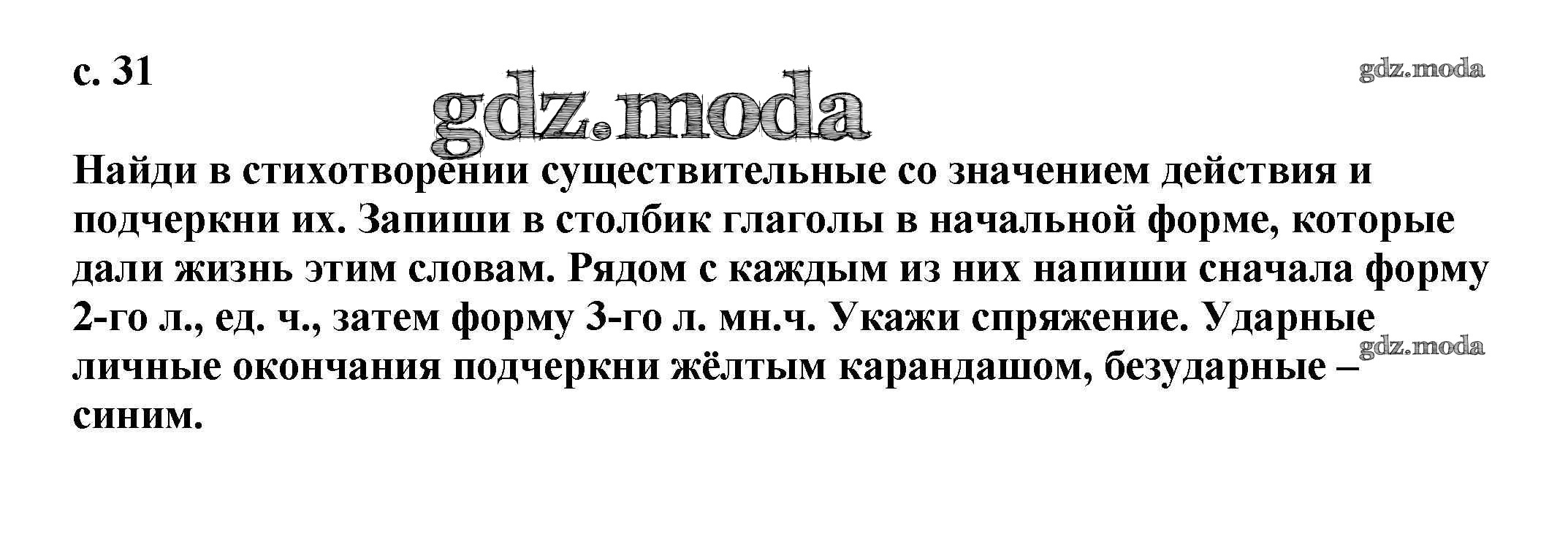 ОТВЕТ на задание № 31 Тетрадь для самостоятельной работы по Русскому языку 3 класс Байкова