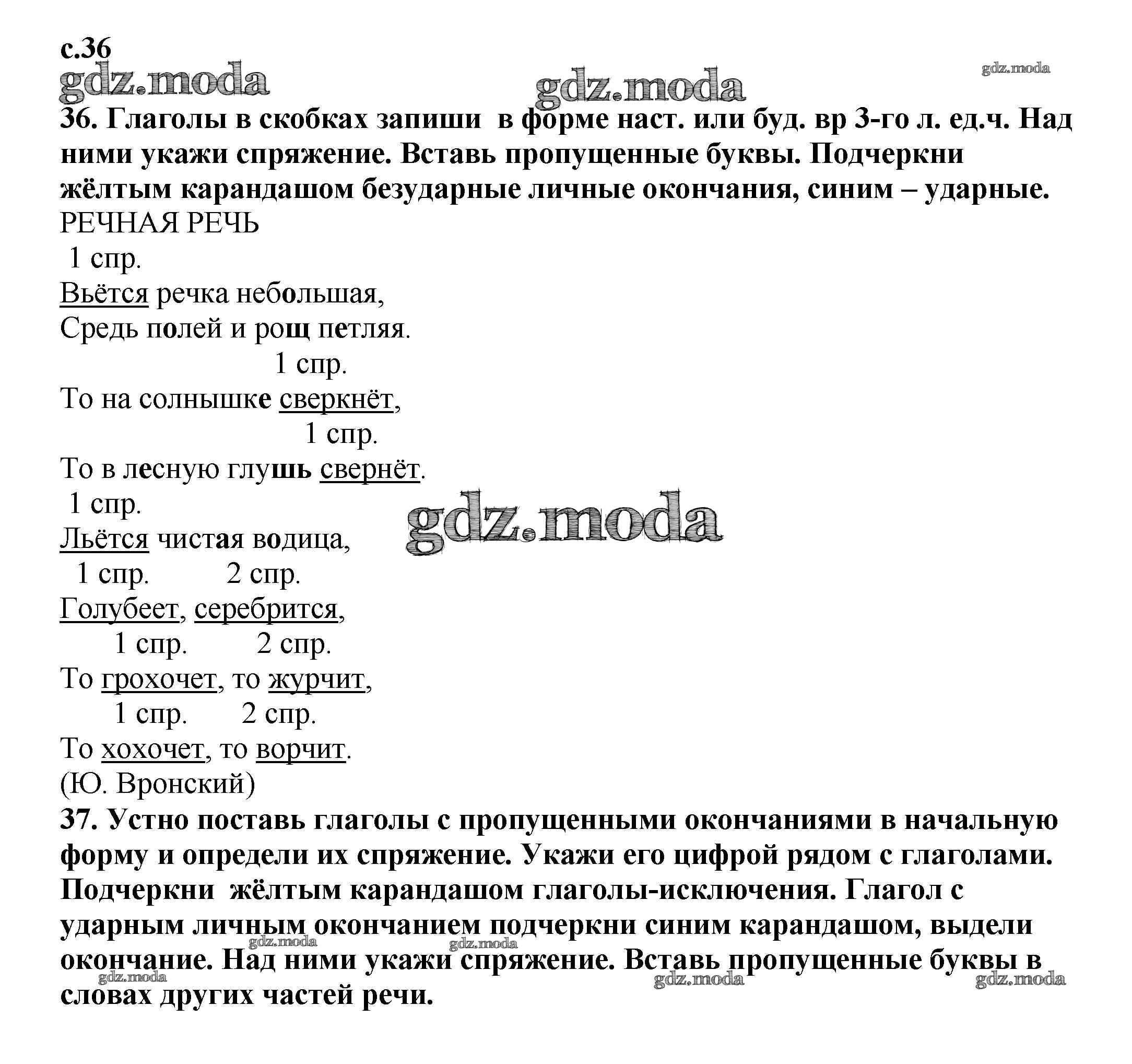 ГДЗ решение к заданию № 36 Русский язык 3 класс тетрадь для самостоятельной работы Байкова Т.А. Академкнига 2017 Часть 1, Часть 2 ФГОС бесплатно на гдз.мода!