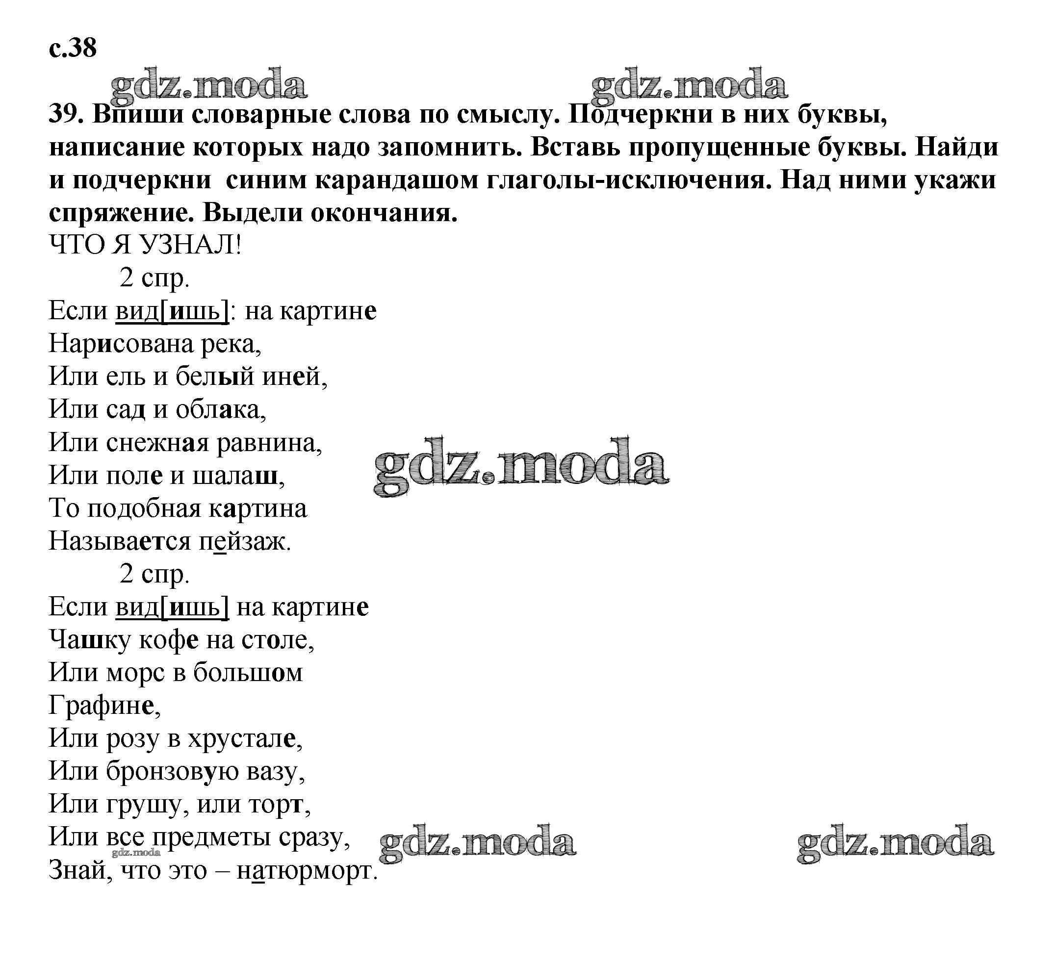 ГДЗ решение к заданию № 38 Русский язык 3 класс тетрадь для самостоятельной работы Байкова Т.А. Академкнига 2017 Часть 1, Часть 2 ФГОС бесплатно на гдз.мода!