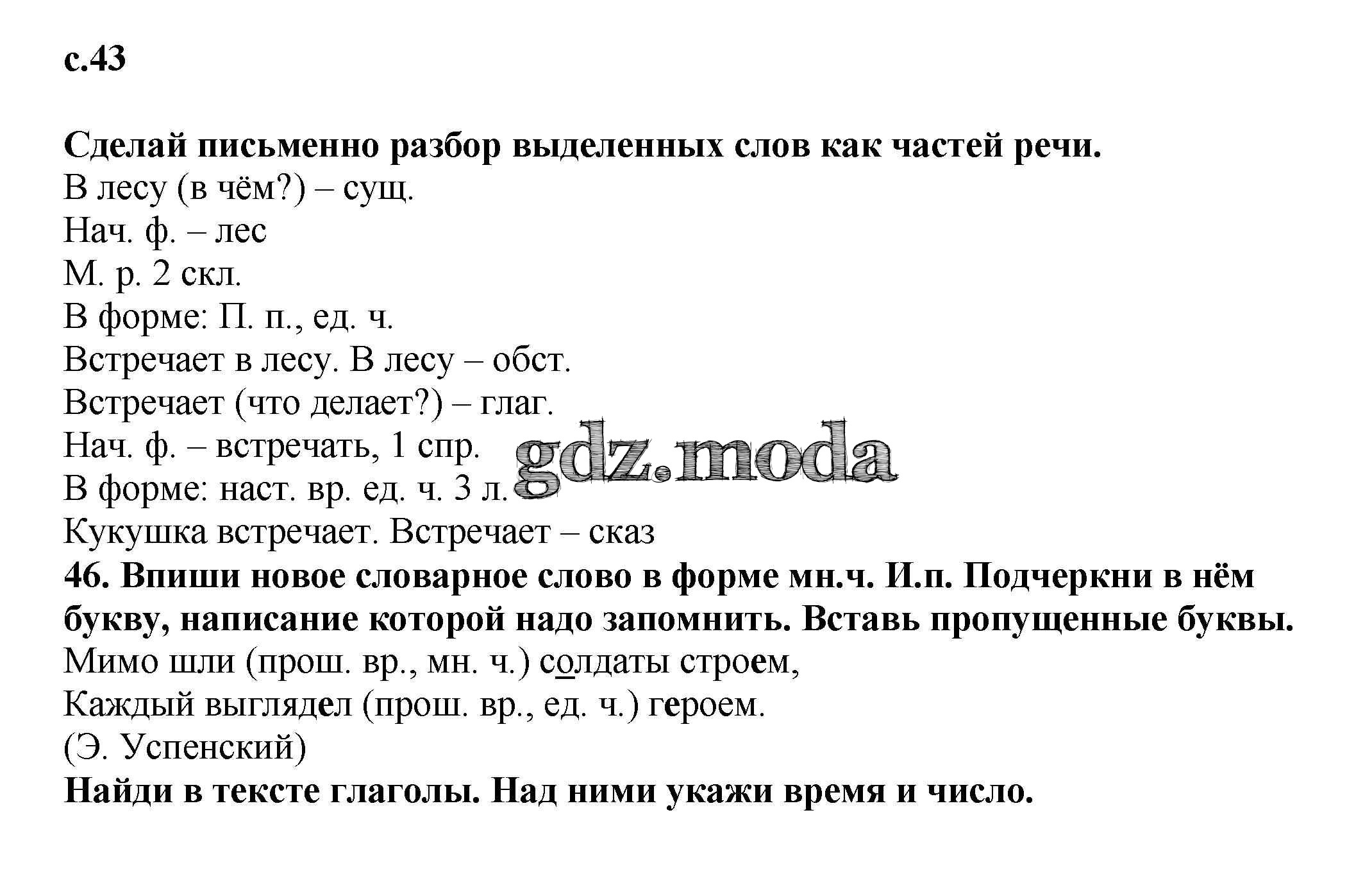 ОТВЕТ на задание № 43 Тетрадь для самостоятельной работы по Русскому языку 3 класс Байкова