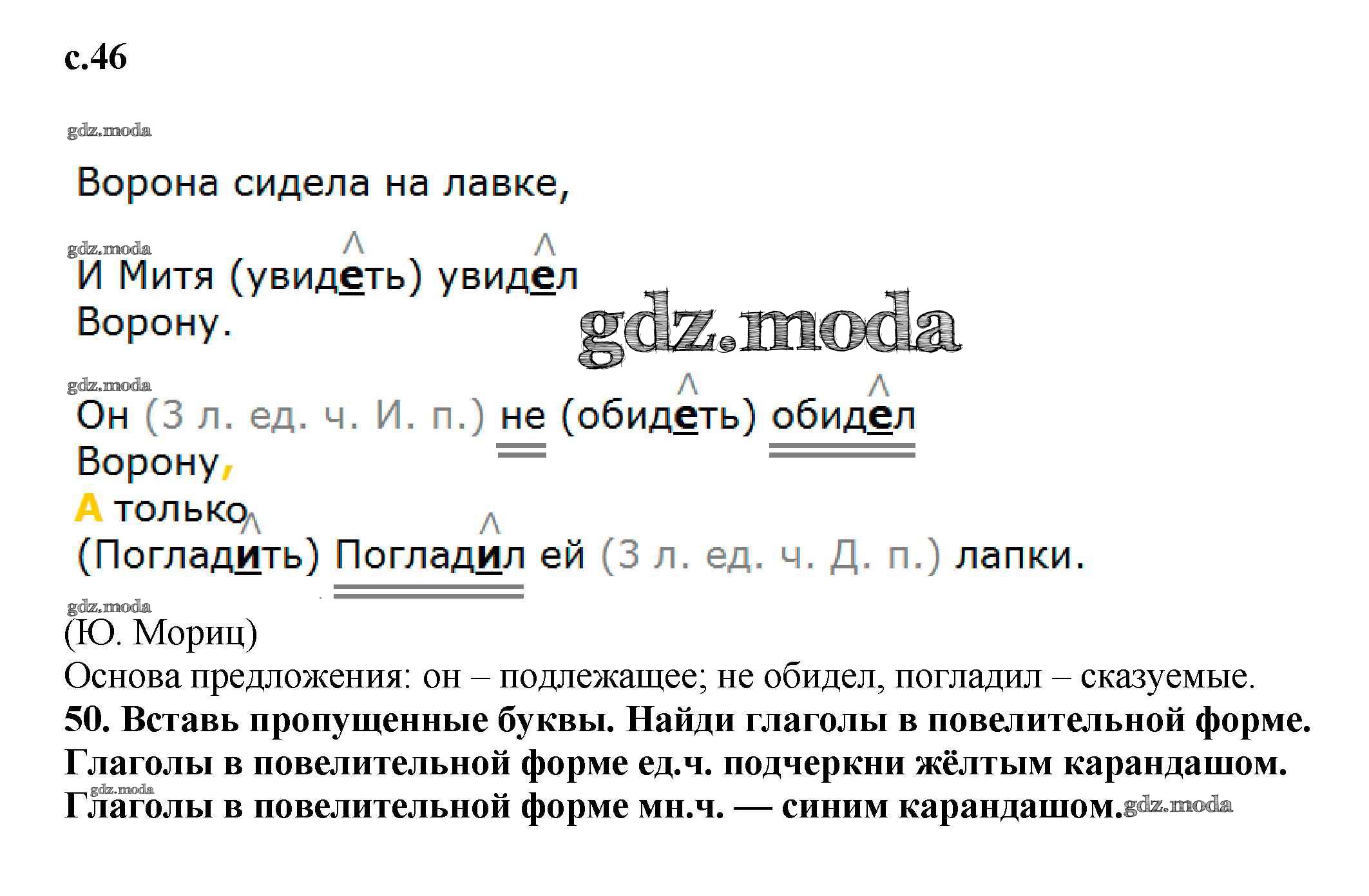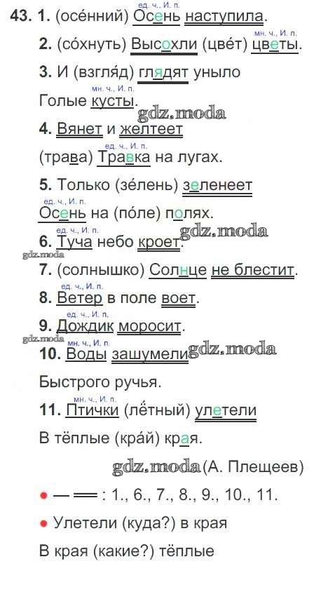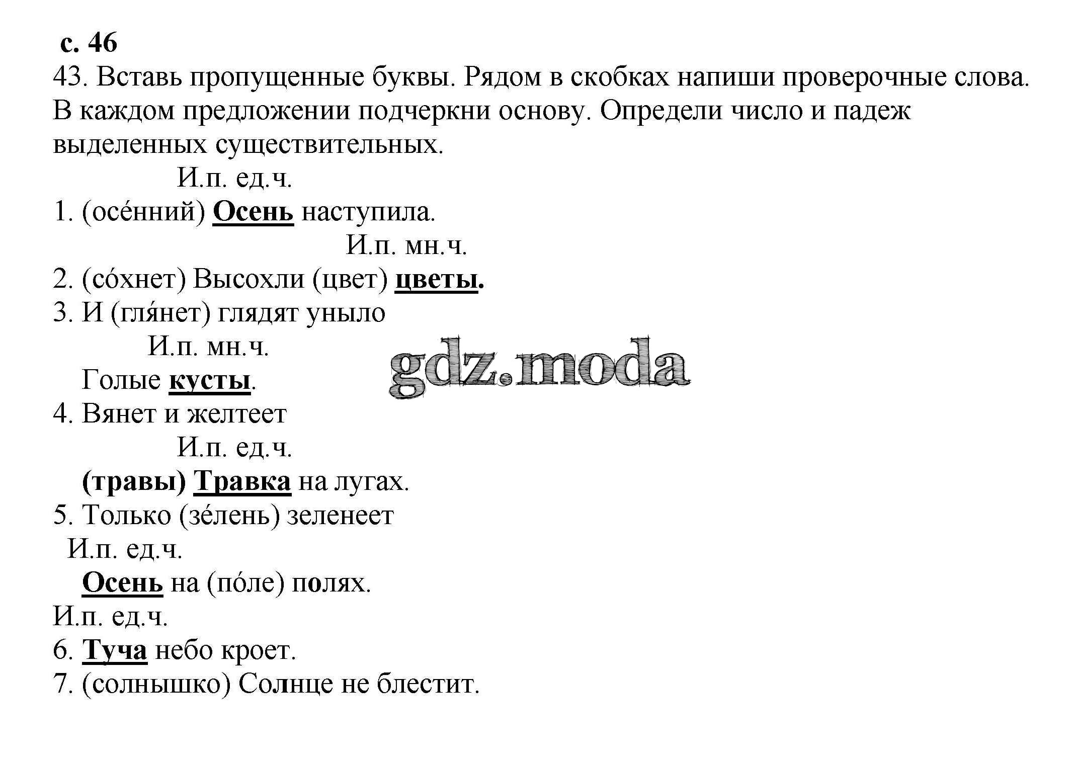 ОТВЕТ на задание № 46 Тетрадь для самостоятельной работы по Русскому языку 3 класс Байкова