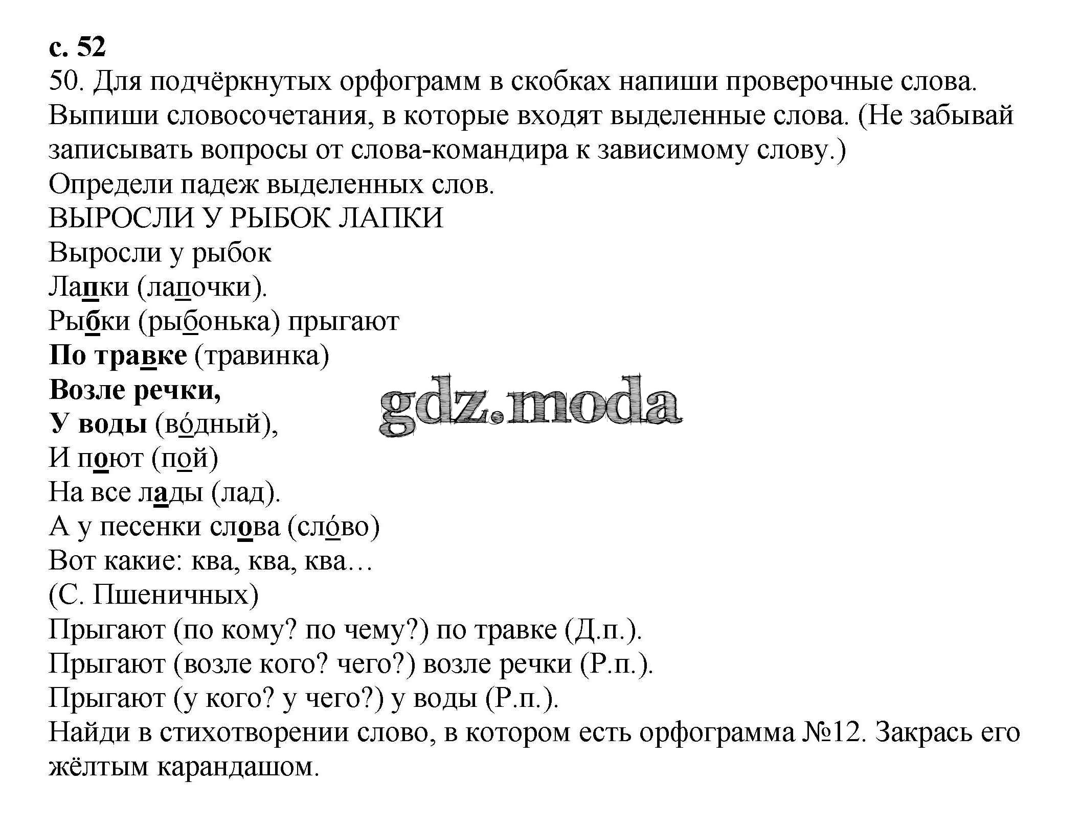 ГДЗ решение к заданию № 52 Русский язык 3 класс тетрадь для самостоятельной работы Байкова Т.А. Академкнига 2017 Часть 1, Часть 2 ФГОС бесплатно на гдз.мода!