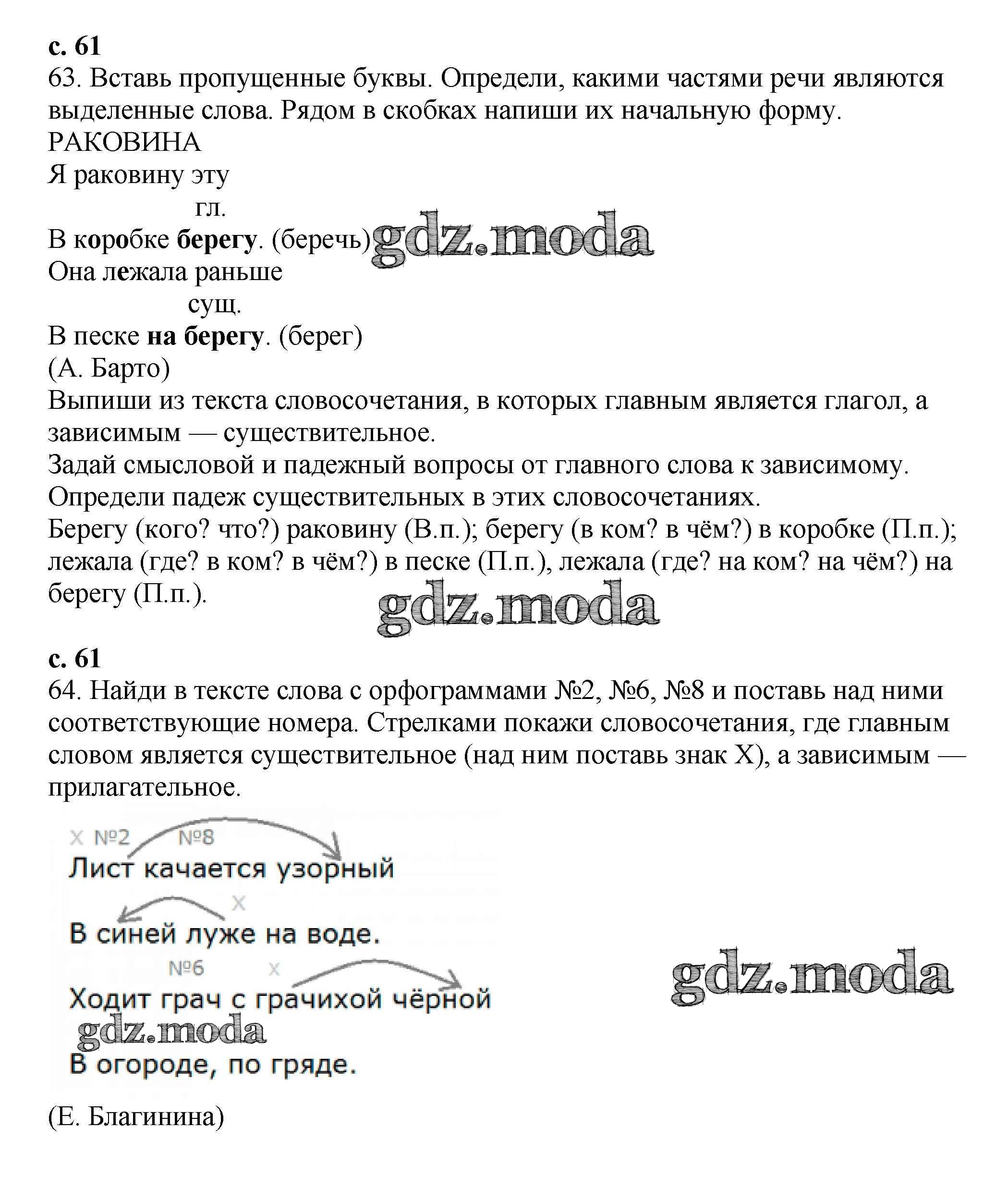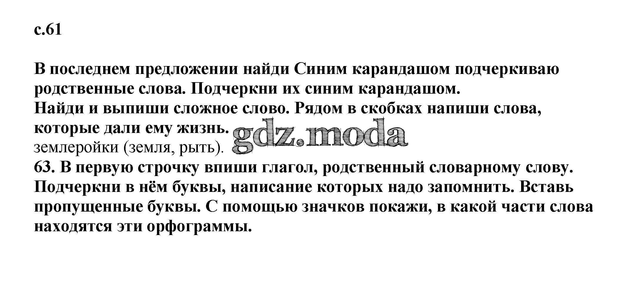 ОТВЕТ на задание № 61 Тетрадь для самостоятельной работы по Русскому языку 3 класс Байкова