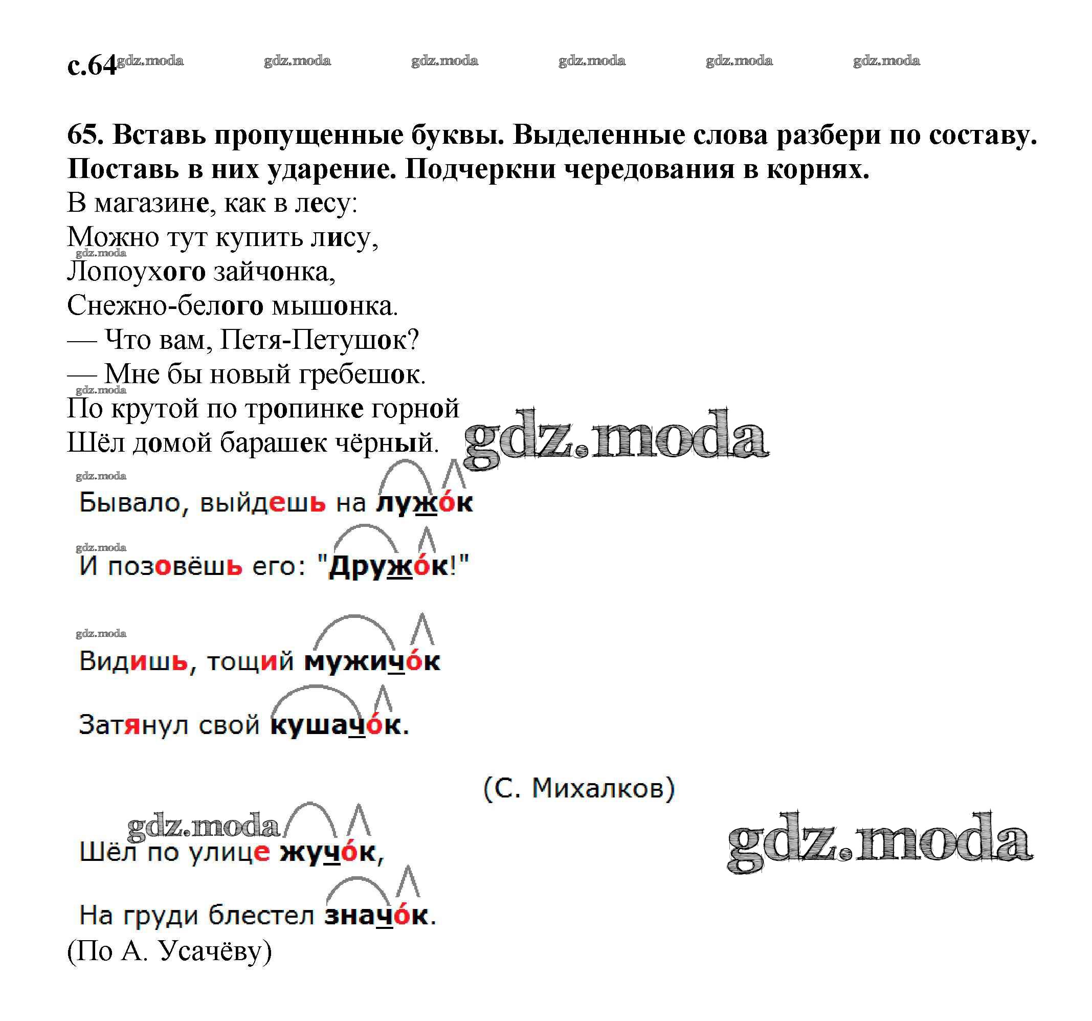 ГДЗ решение к заданию № 64 Русский язык 3 класс тетрадь для самостоятельной работы Байкова Т.А. Академкнига 2017 Часть 1, Часть 2 ФГОС бесплатно на гдз.мода!