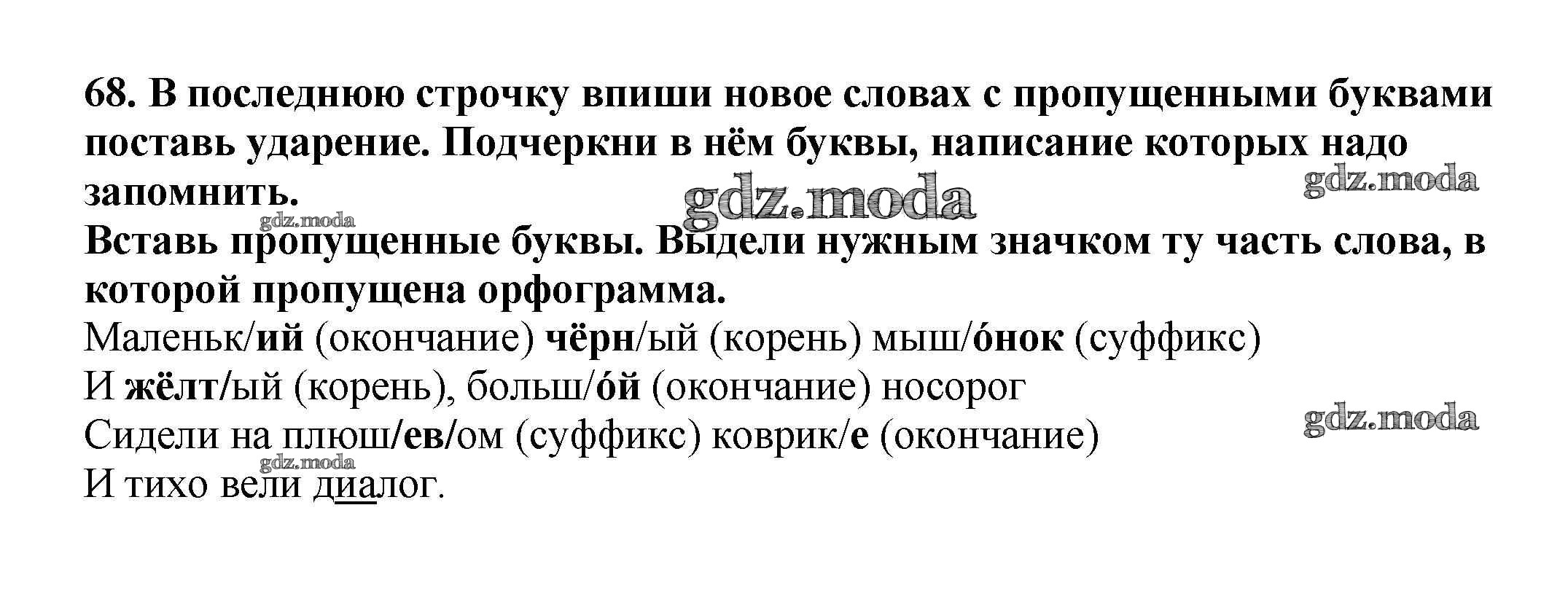 ОТВЕТ на задание № 68 Тетрадь для самостоятельной работы по Русскому языку 3 класс Байкова
