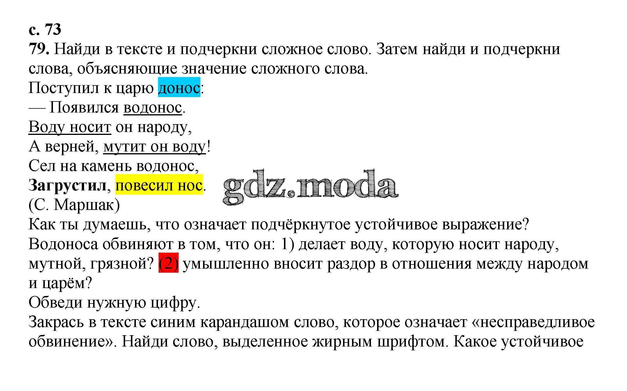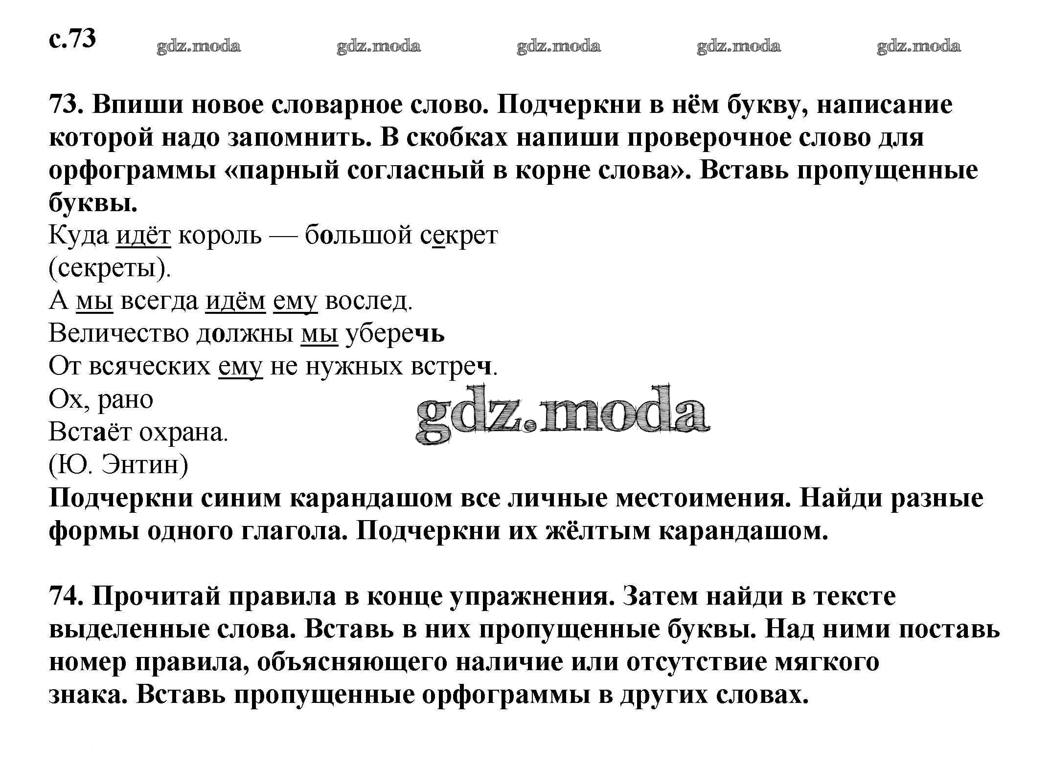 ОТВЕТ на задание № 73 Тетрадь для самостоятельной работы по Русскому языку 3 класс Байкова