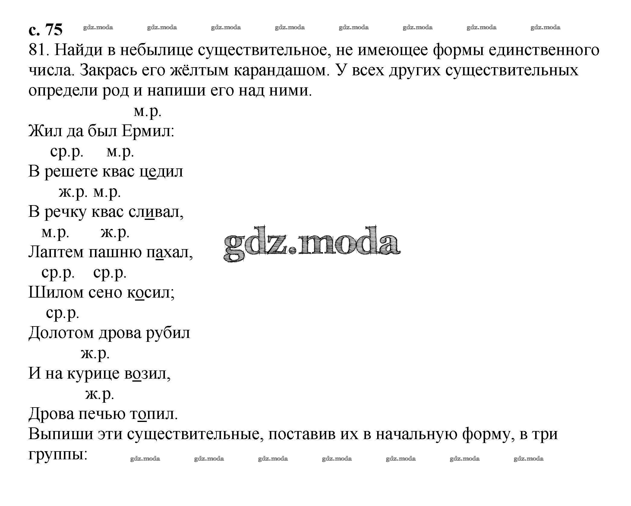 ОТВЕТ на задание № 75 Тетрадь для самостоятельной работы по Русскому языку 3 класс Байкова