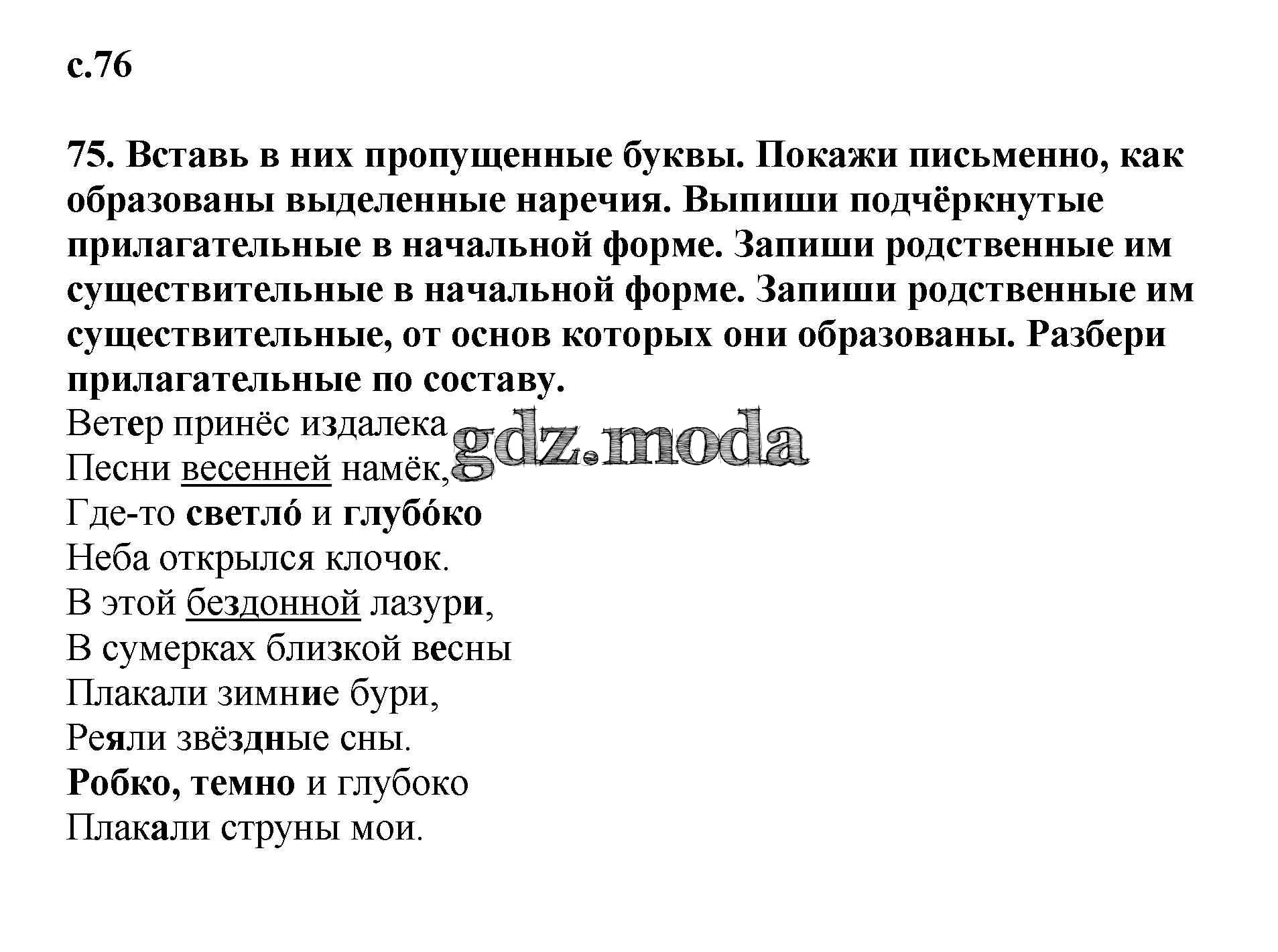 ГДЗ решение к заданию № 76 Русский язык 3 класс тетрадь для самостоятельной работы Байкова Т.А. Академкнига 2017 Часть 1, Часть 2 ФГОС бесплатно на гдз.мода!