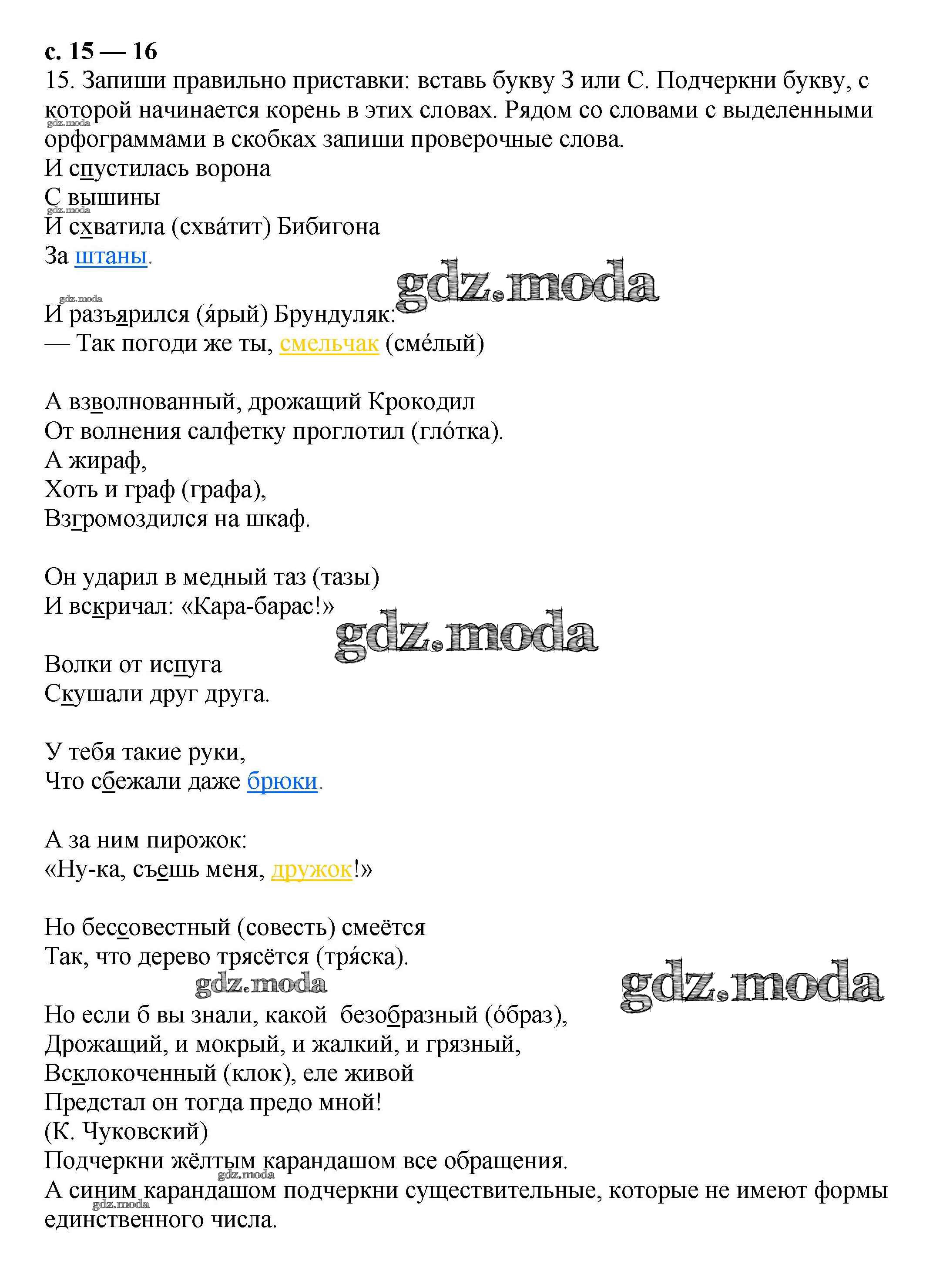 ГДЗ решение к заданию № 15 Русский язык 3 класс тетрадь для самостоятельной работы Байкова Т.А. Академкнига 2017 Часть 1, Часть 2 ФГОС бесплатно на гдз.мода!