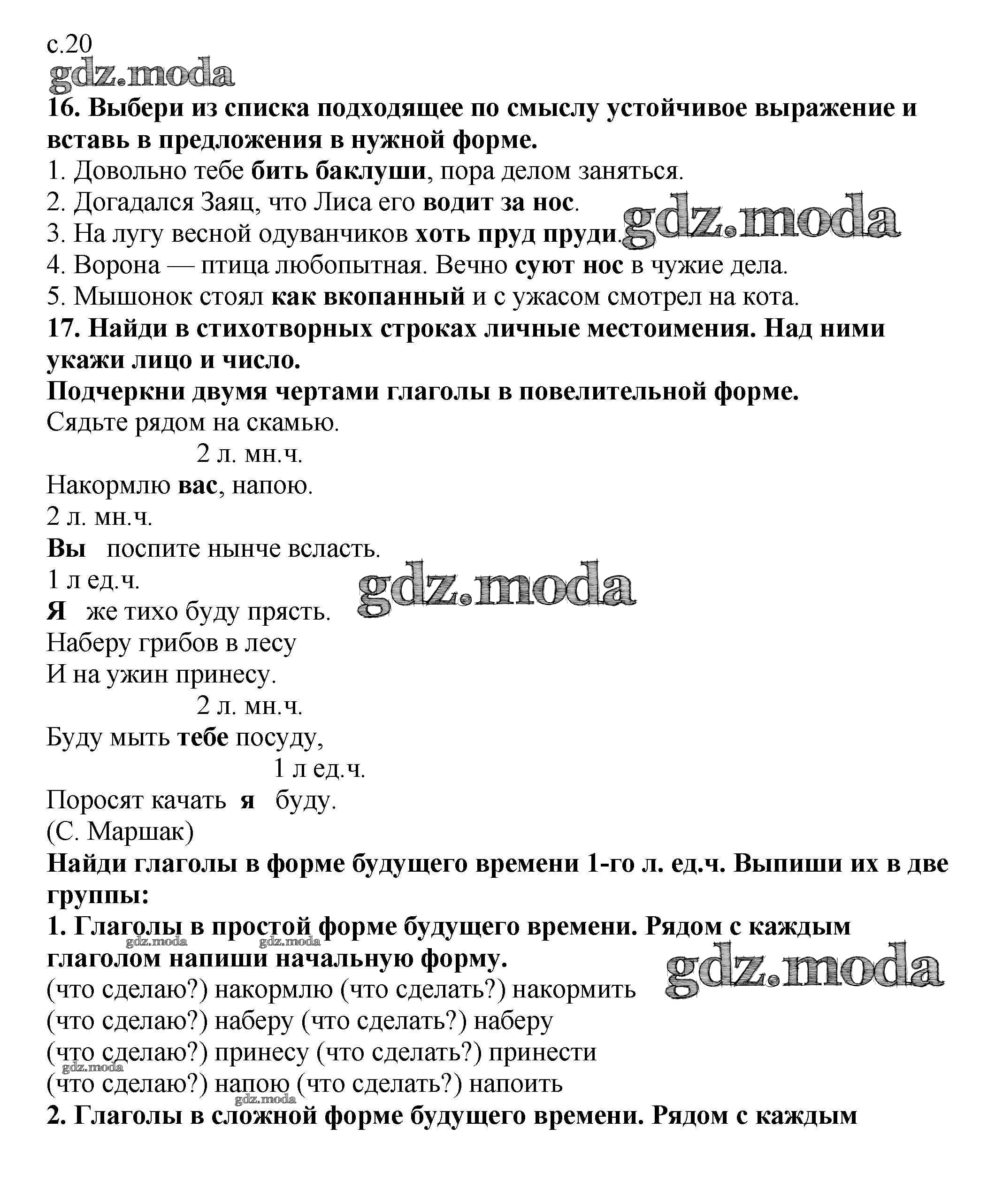 ГДЗ решение к заданию № 20 Русский язык 3 класс тетрадь для самостоятельной работы Байкова Т.А. Академкнига 2017 Часть 1, Часть 2 ФГОС бесплатно на гдз.мода!