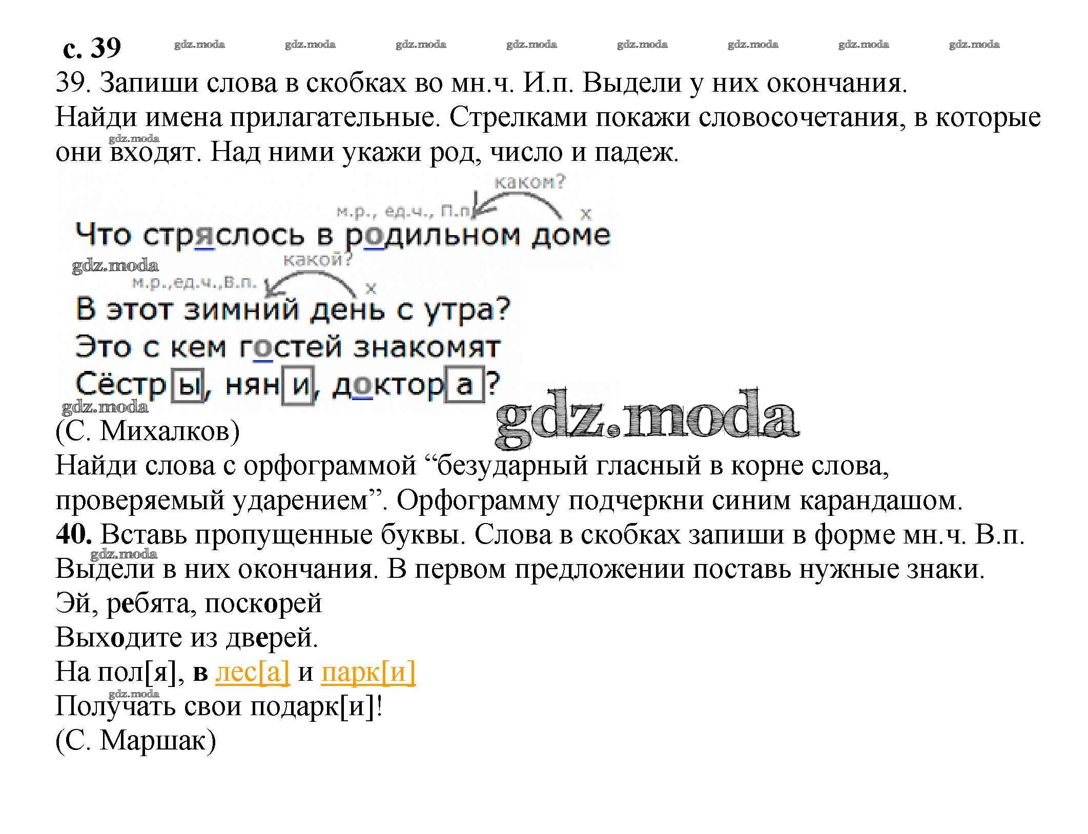 ОТВЕТ на задание № 39 Тетрадь для самостоятельной работы по Русскому языку 3 класс Байкова