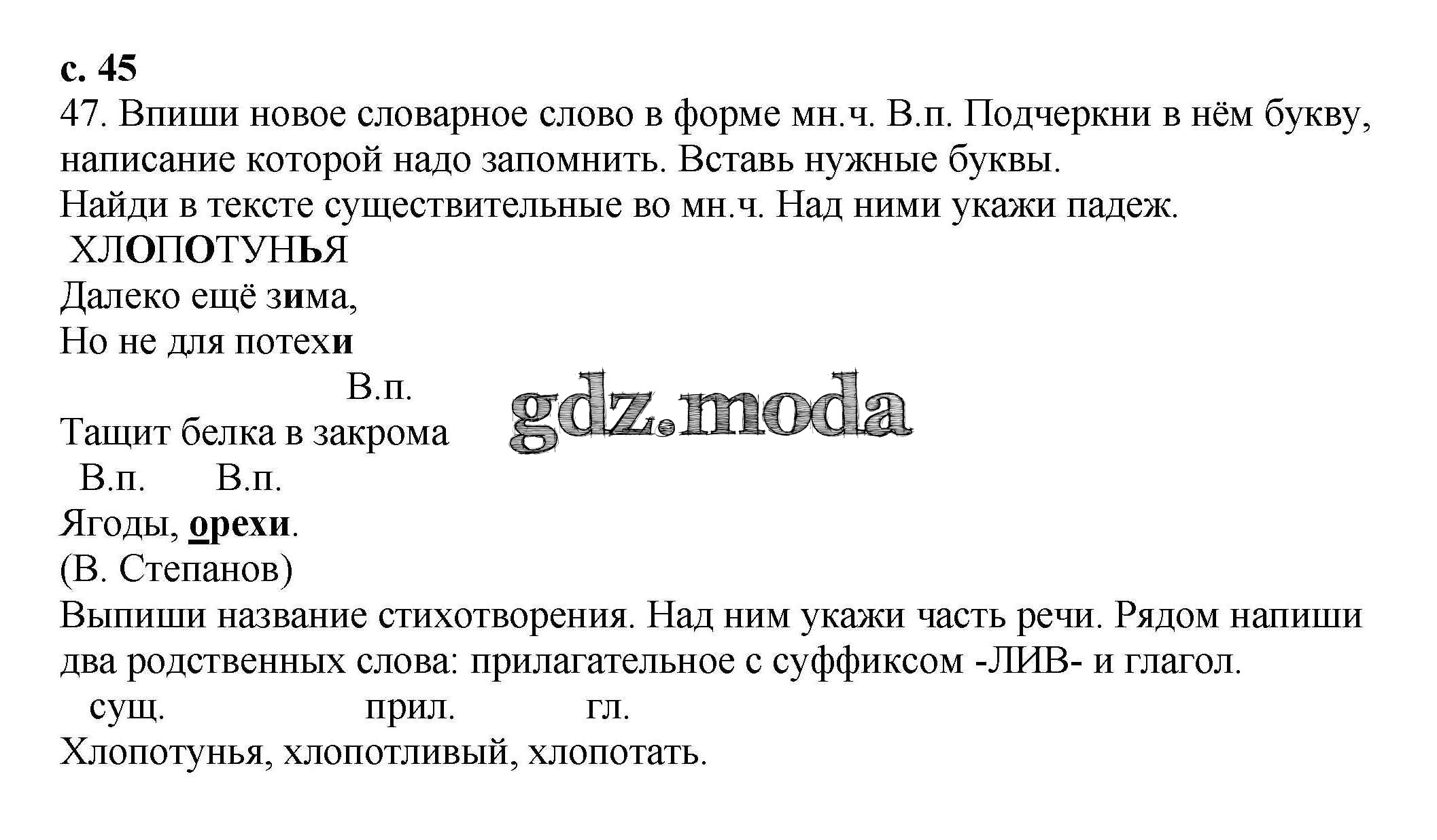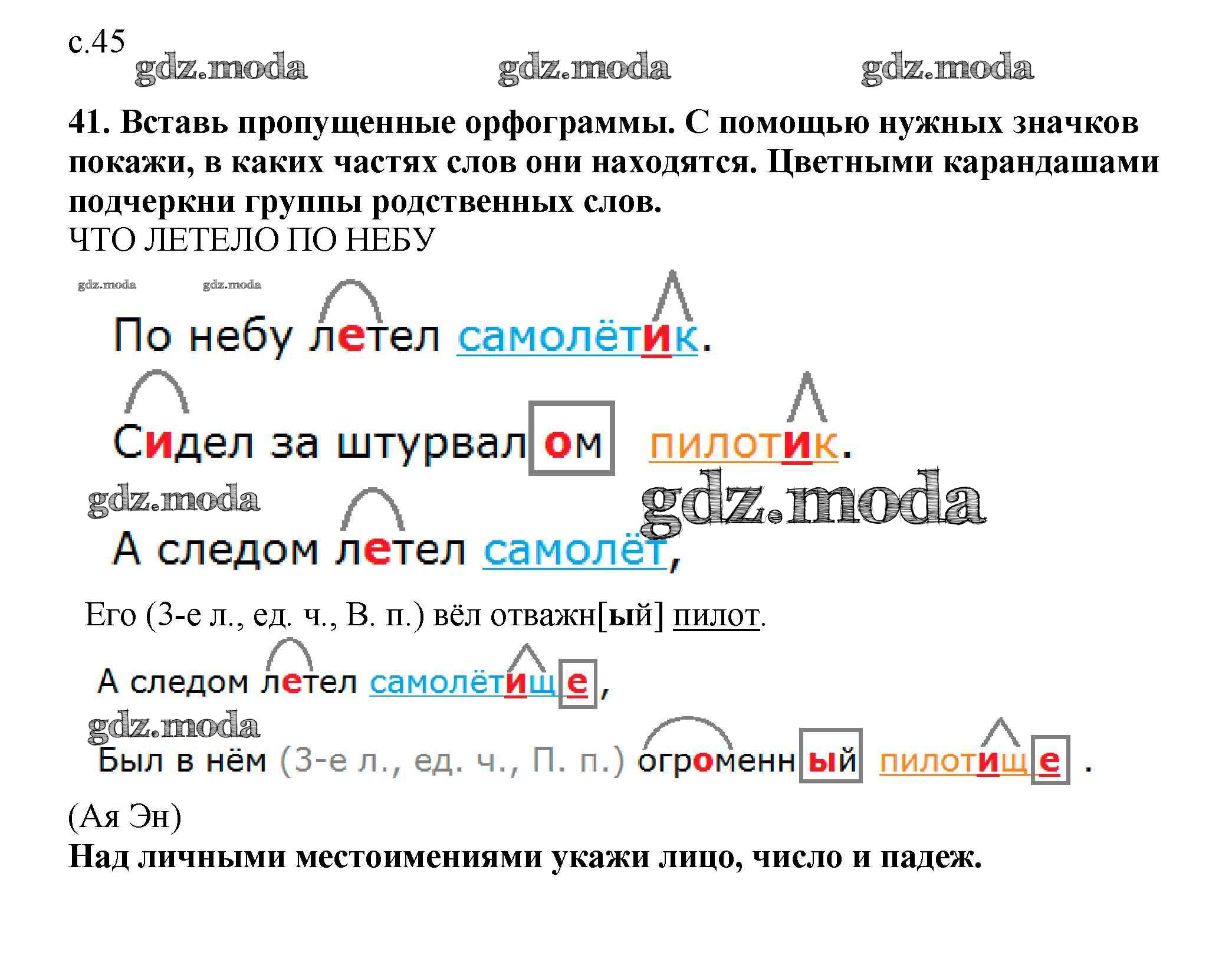 ГДЗ решение к заданию № 45 Русский язык 3 класс тетрадь для самостоятельной работы Байкова Т.А. Академкнига 2017 Часть 1, Часть 2 ФГОС бесплатно на гдз.мода!