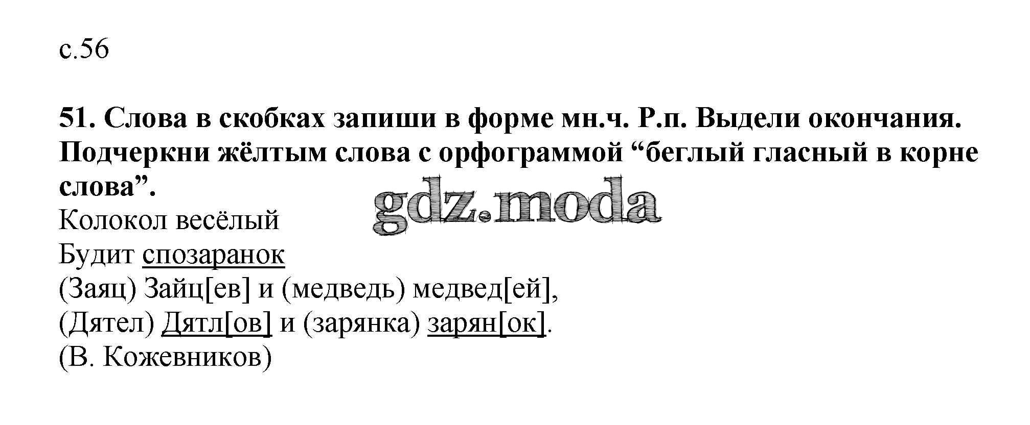 ГДЗ решение к заданию № 56 Русский язык 3 класс тетрадь для самостоятельной работы Байкова Т.А. Академкнига 2017 Часть 1, Часть 2 ФГОС бесплатно на гдз.мода!