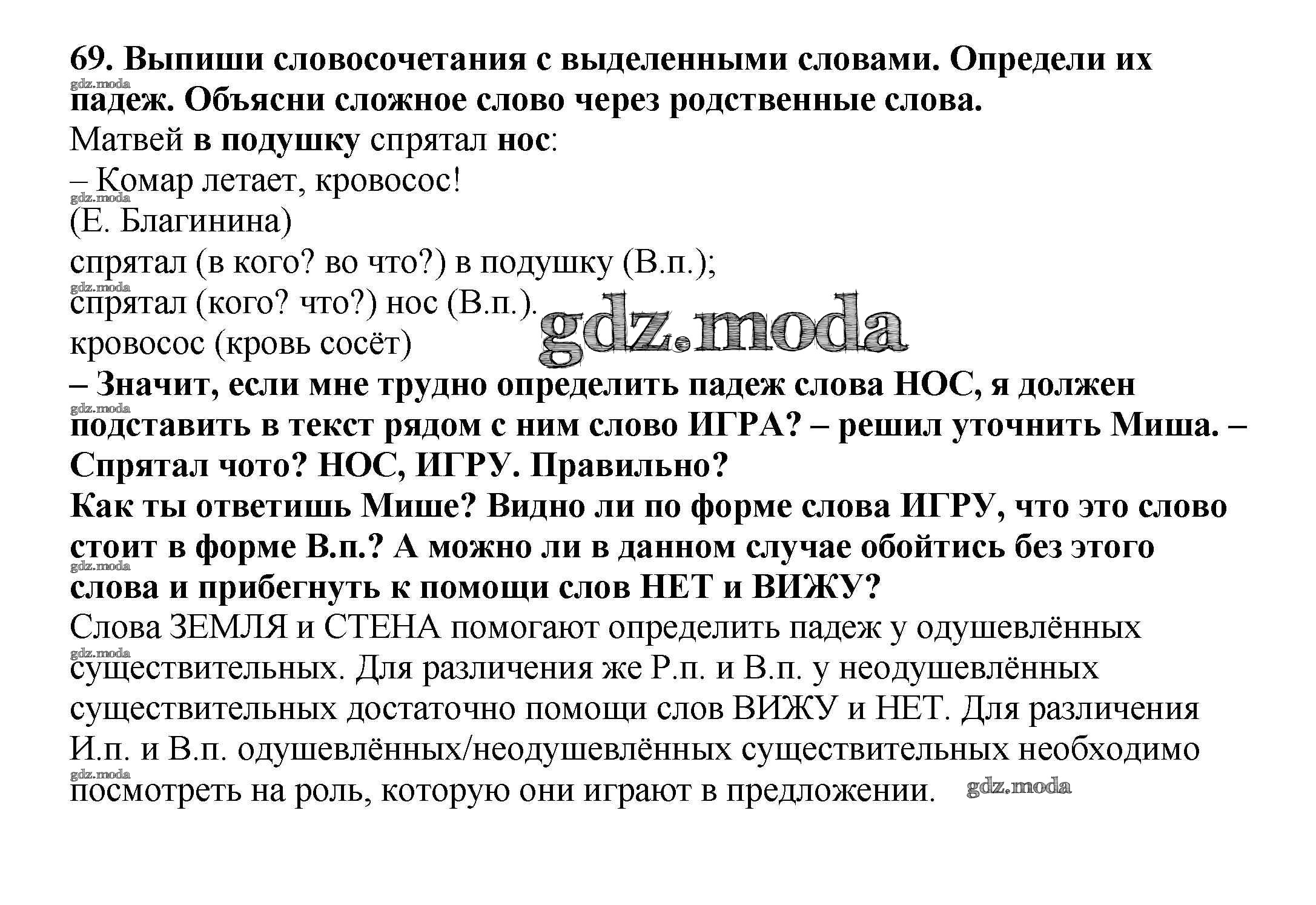 ОТВЕТ на задание № 69 Учебник по Русскому языку 3 класс Каленчук Перспективная начальная школа