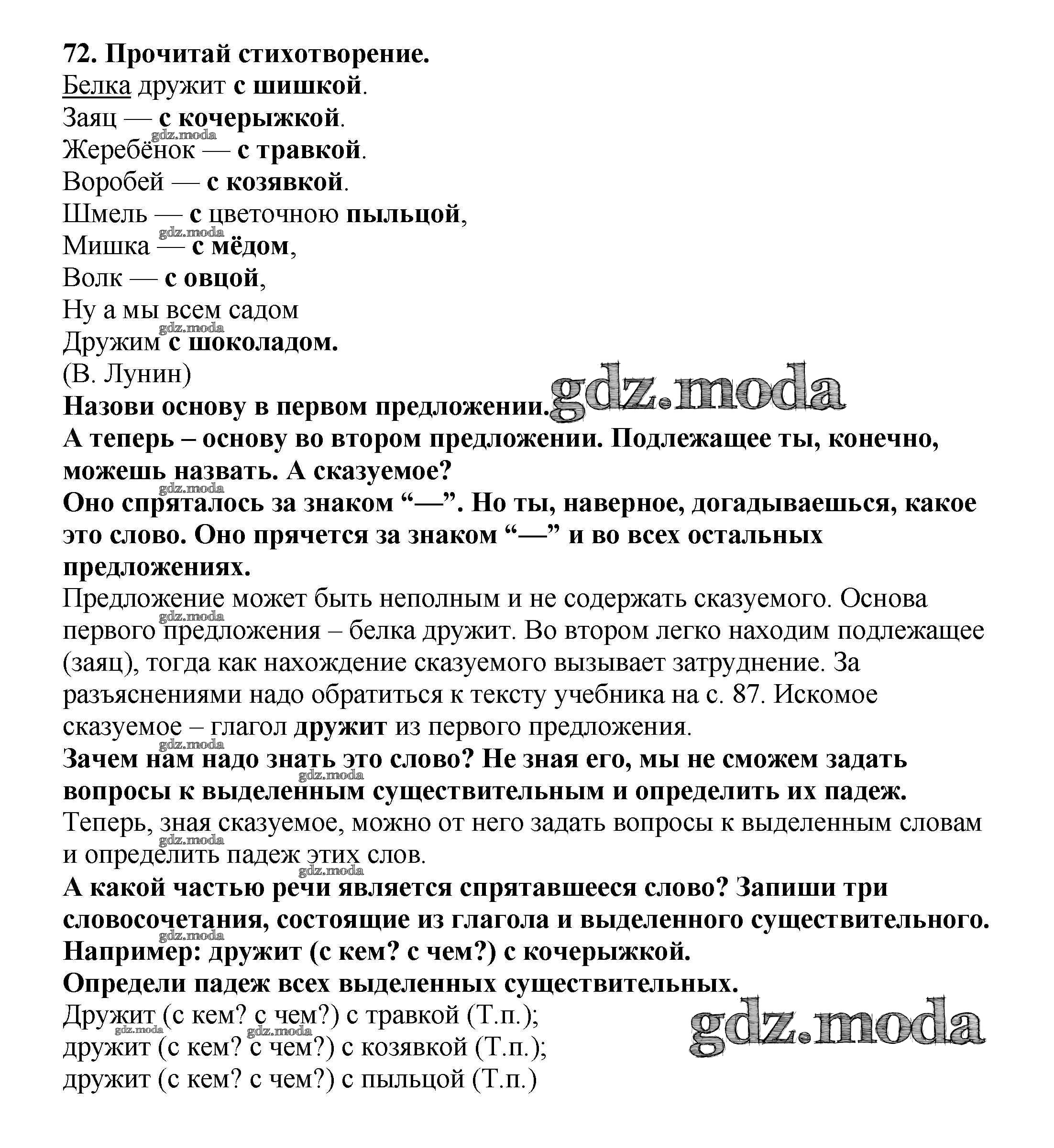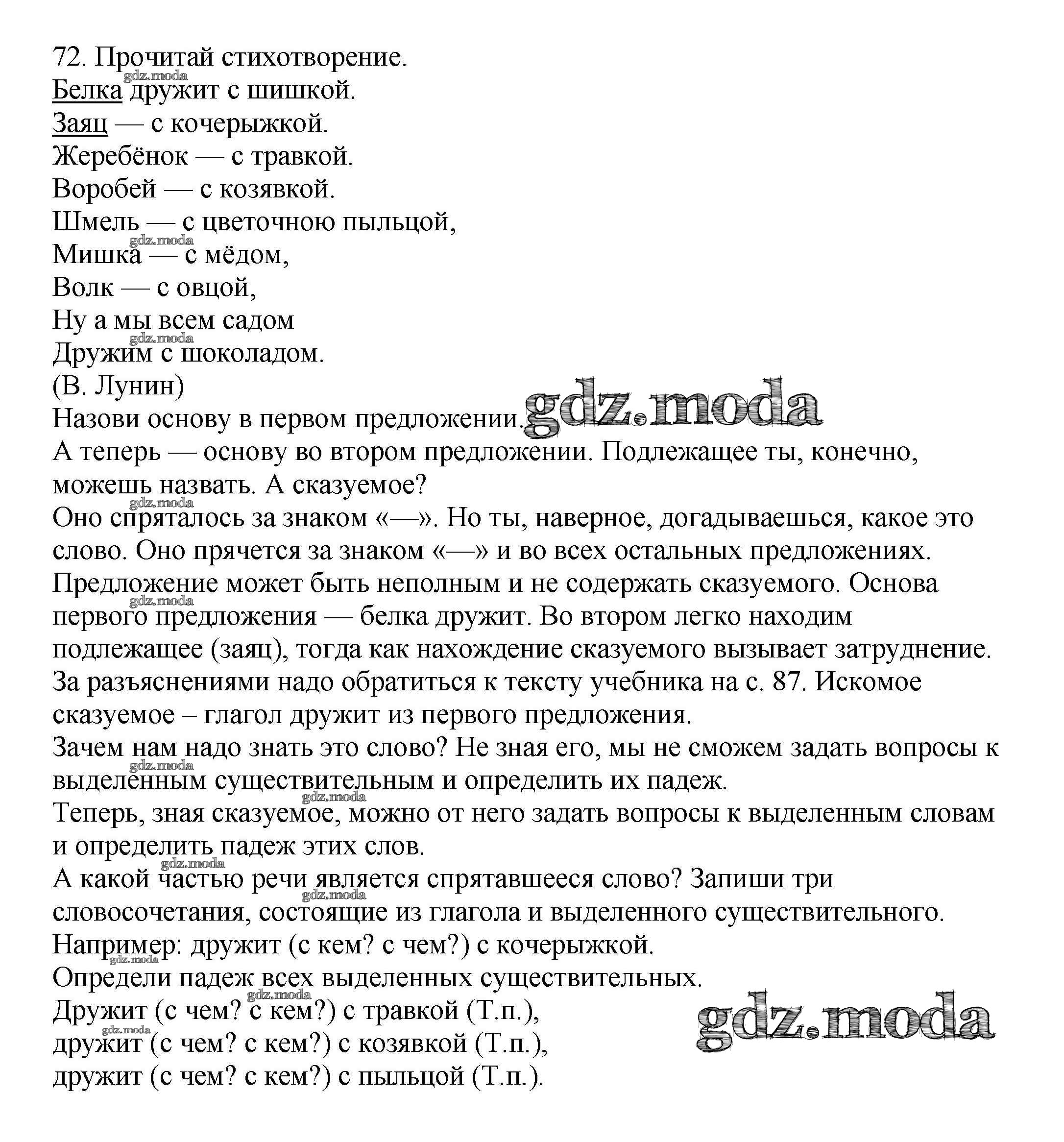 ОТВЕТ на задание № 72 Учебник по Русскому языку 3 класс Каленчук Перспективная начальная школа