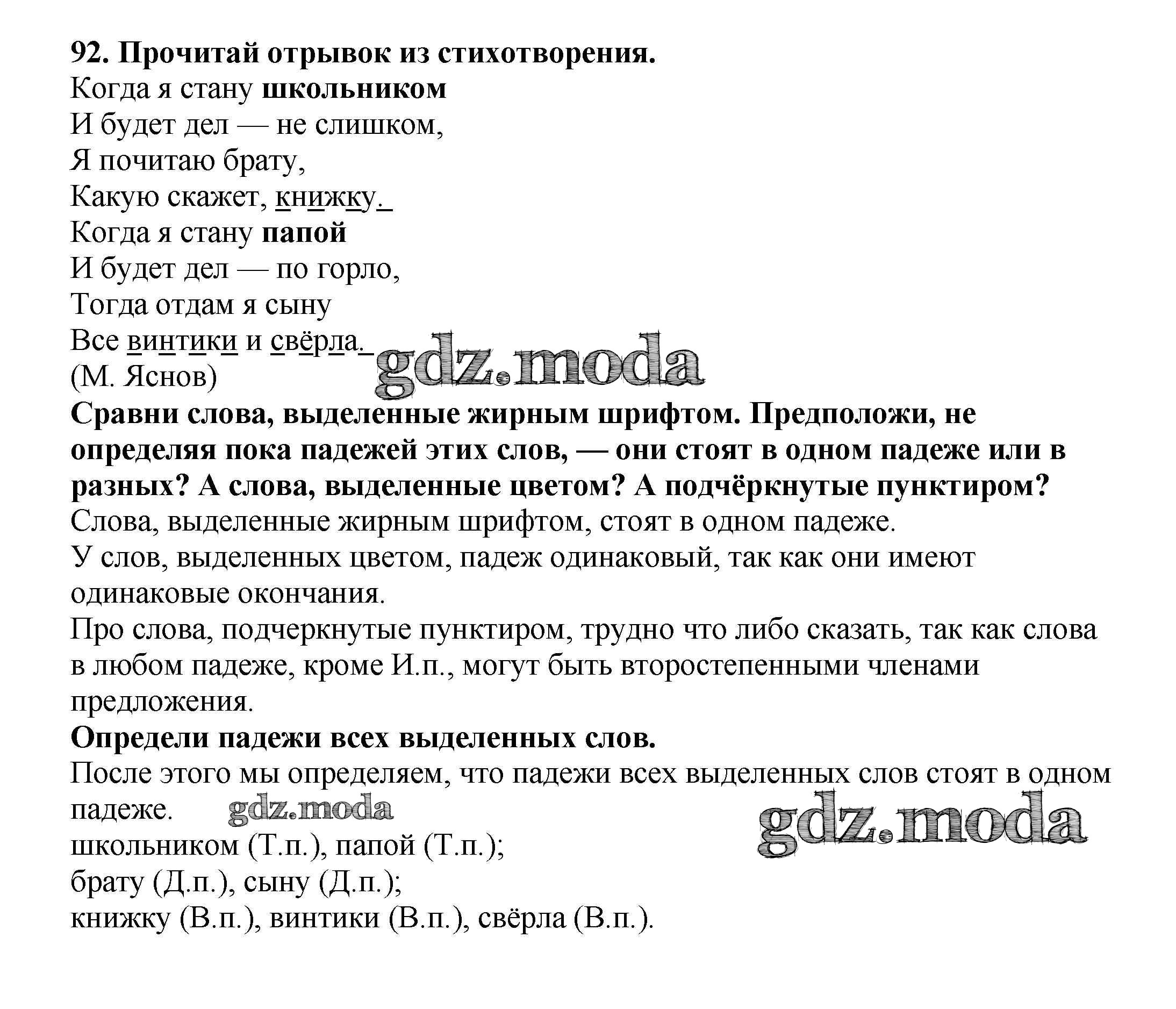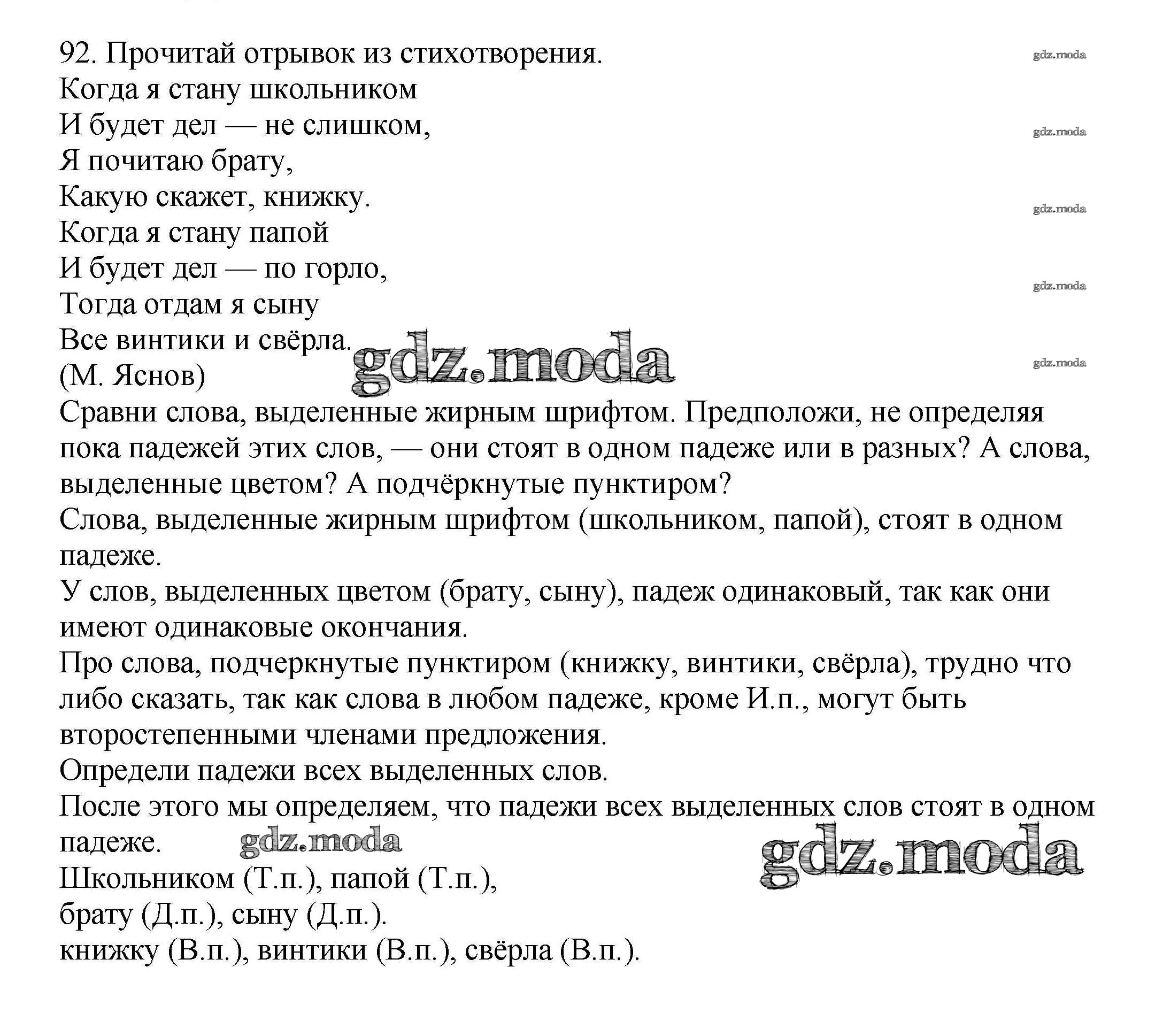 ОТВЕТ на задание № 92 Учебник по Русскому языку 3 класс Каленчук Перспективная начальная школа
