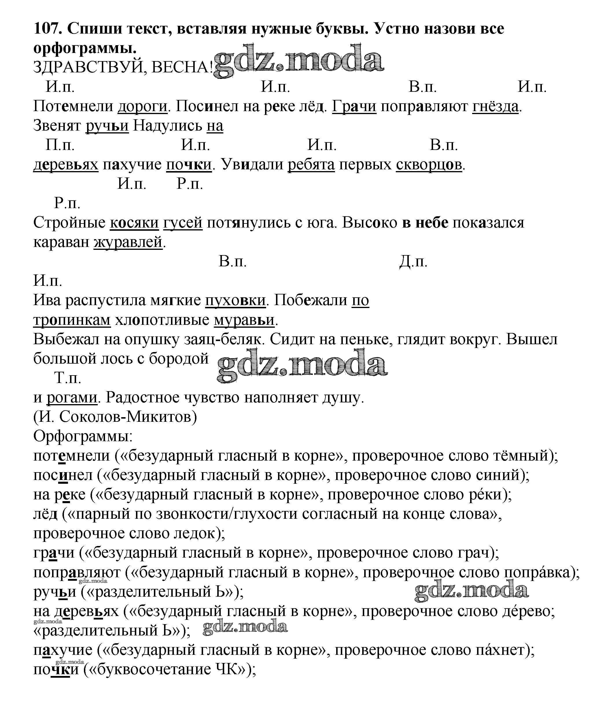 ОТВЕТ на задание № 107 Учебник по Русскому языку 3 класс Каленчук Перспективная начальная школа
