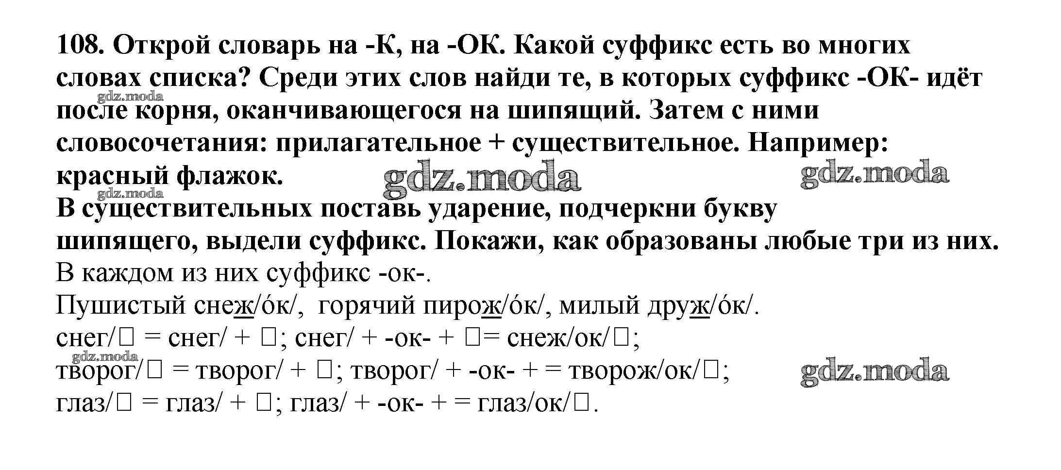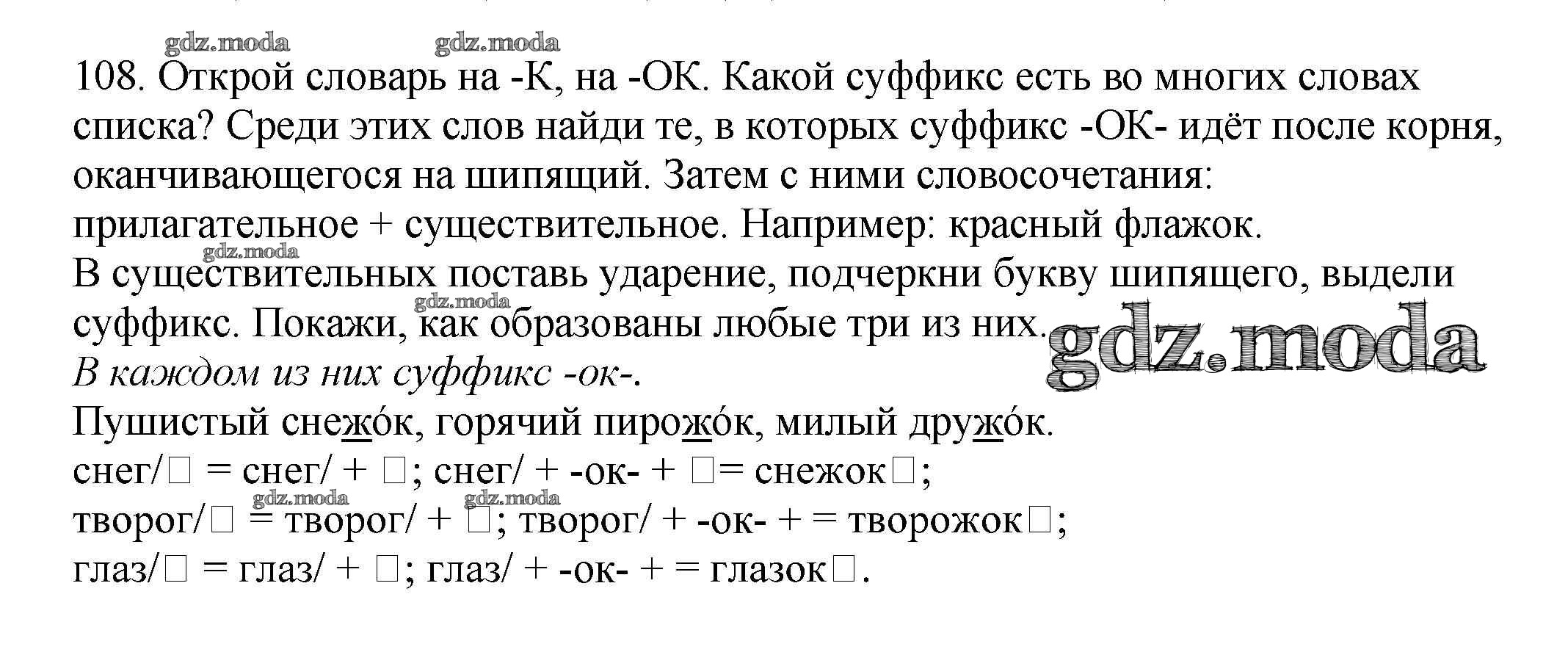 ОТВЕТ на задание № 108 Учебник по Русскому языку 3 класс Каленчук Перспективная начальная школа