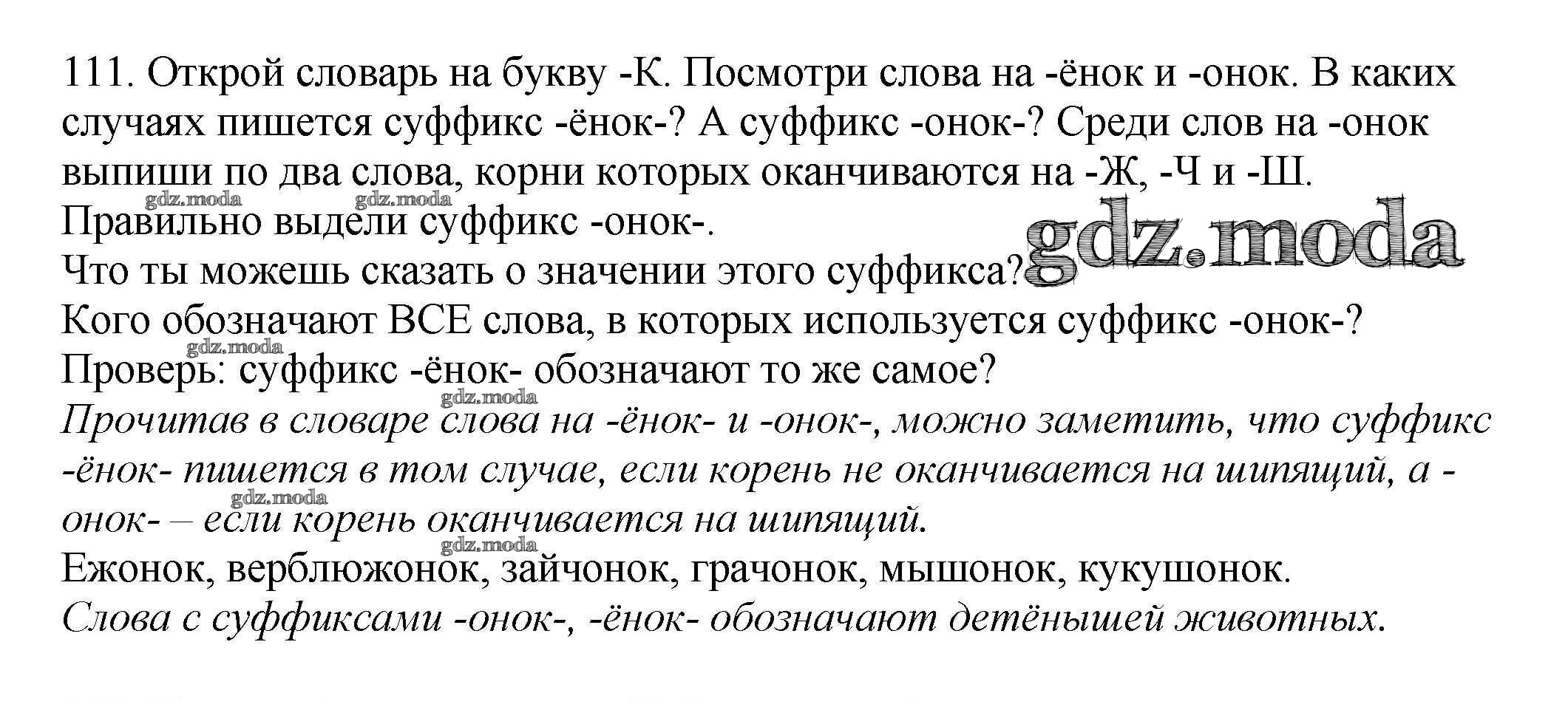ОТВЕТ на задание № 111 Учебник по Русскому языку 3 класс Каленчук Перспективная начальная школа