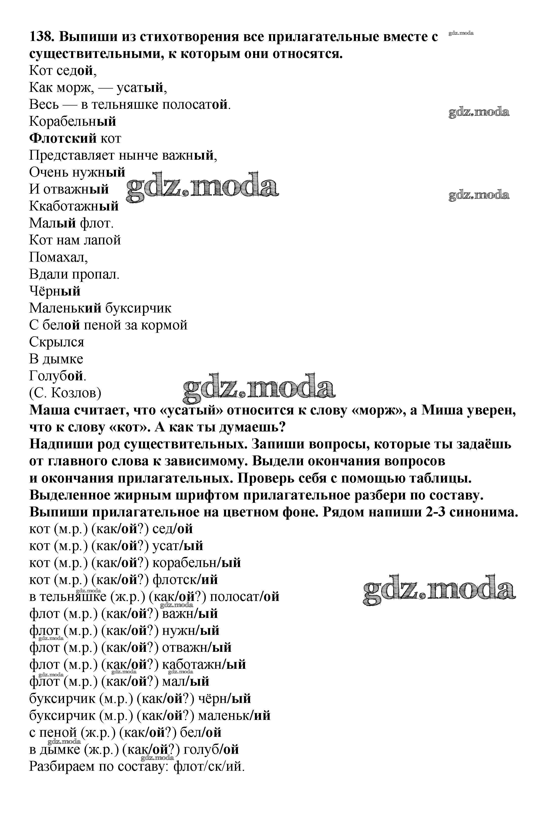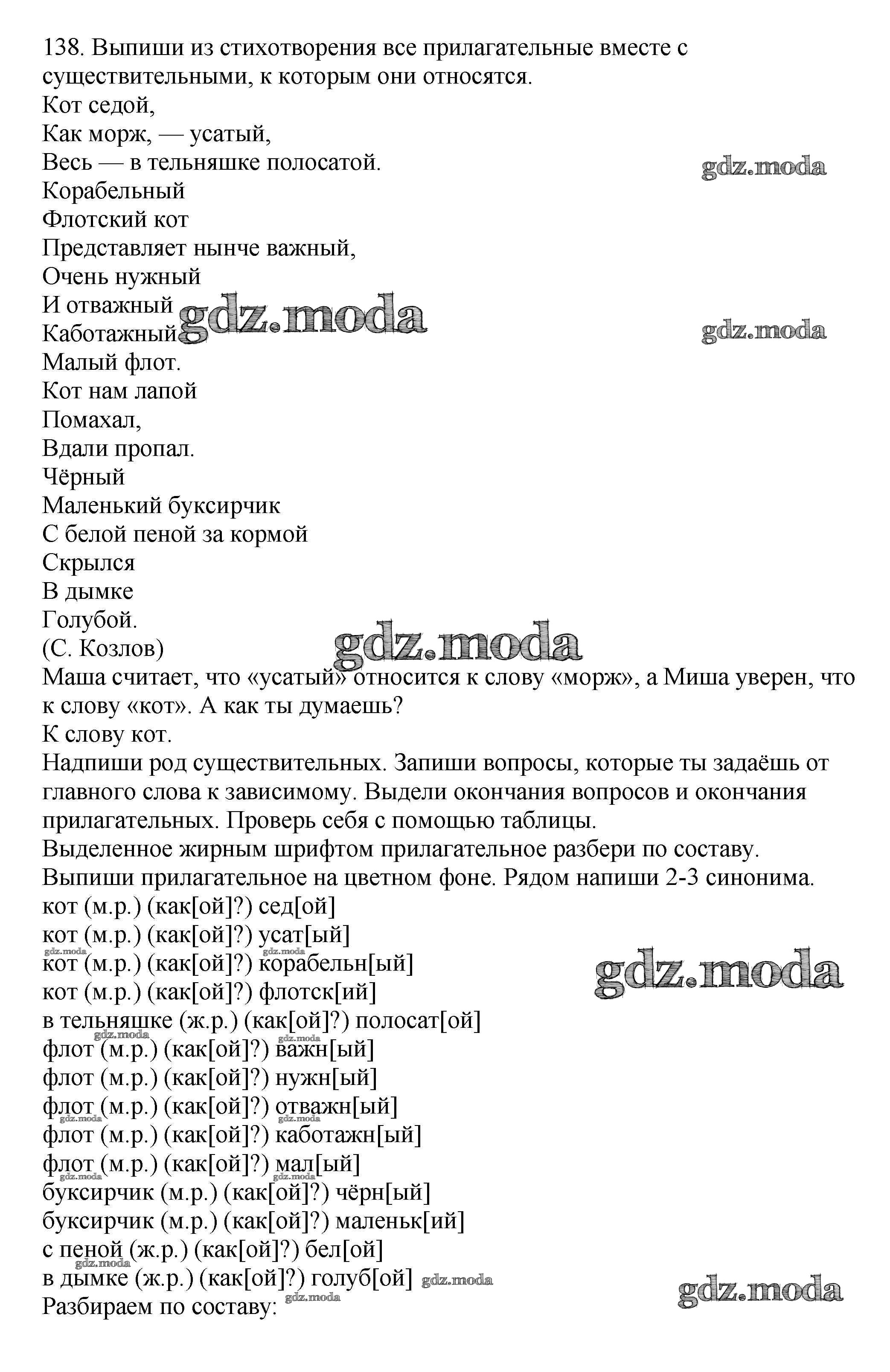 ОТВЕТ на задание № 138 Учебник по Русскому языку 3 класс Каленчук Перспективная начальная школа