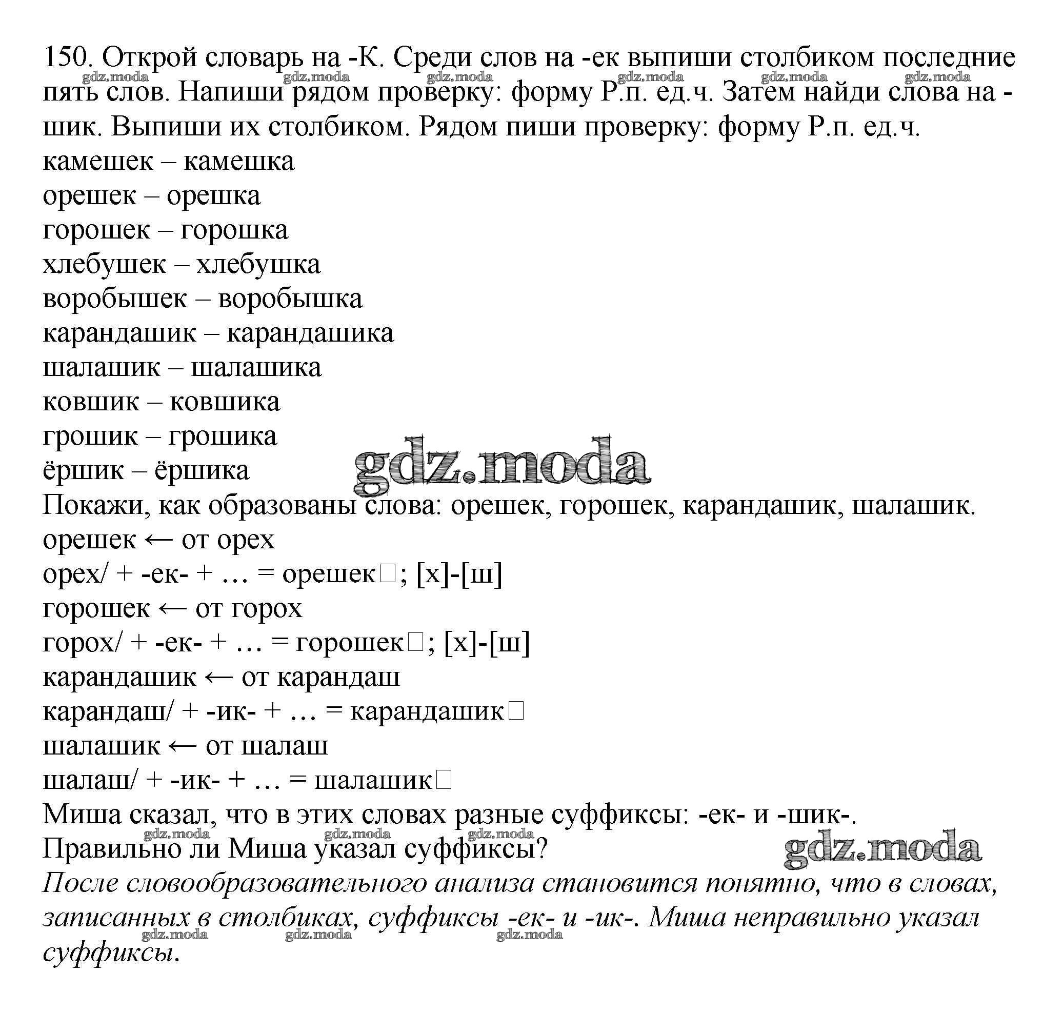 ОТВЕТ на задание № 150 Учебник по Русскому языку 3 класс Каленчук Перспективная начальная школа