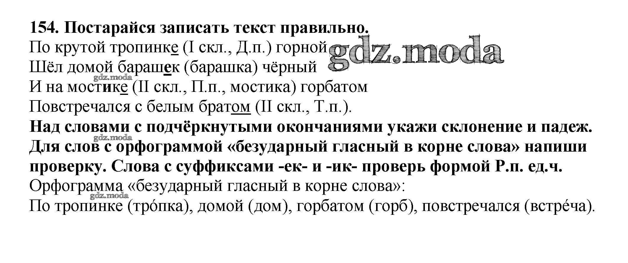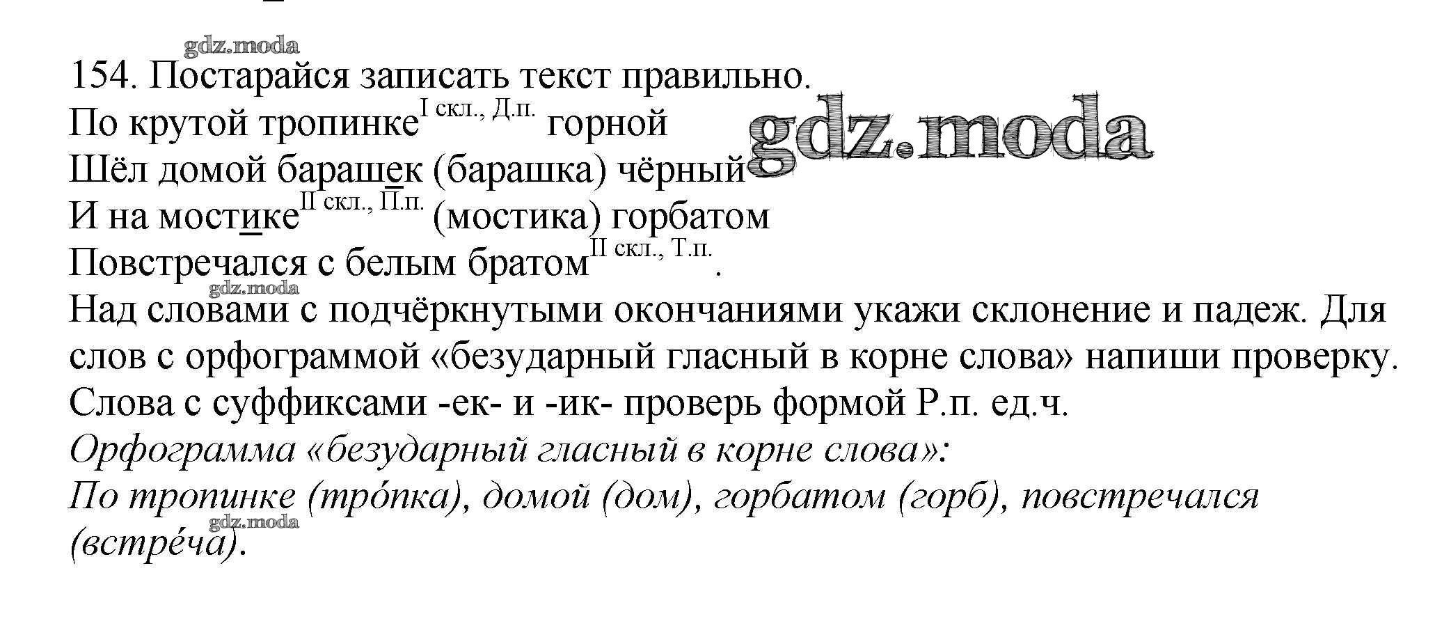 ОТВЕТ на задание № 154 Учебник по Русскому языку 3 класс Каленчук Перспективная начальная школа