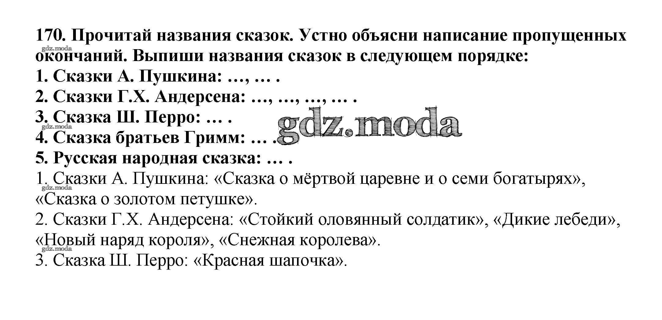 ОТВЕТ на задание № 170 Учебник по Русскому языку 3 класс Каленчук Перспективная начальная школа