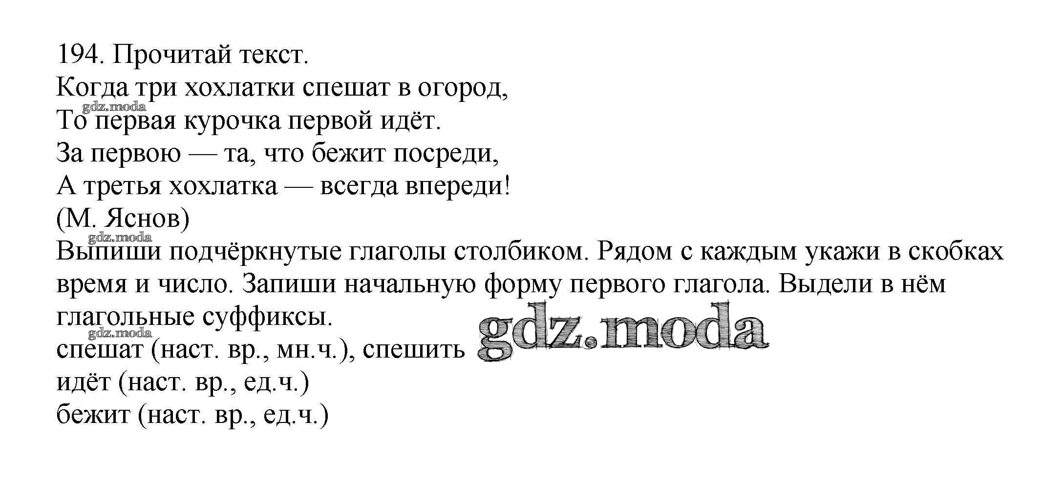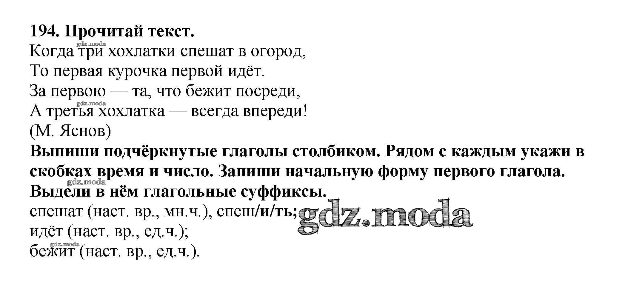ОТВЕТ на задание № 194 Учебник по Русскому языку 3 класс Каленчук Перспективная начальная школа