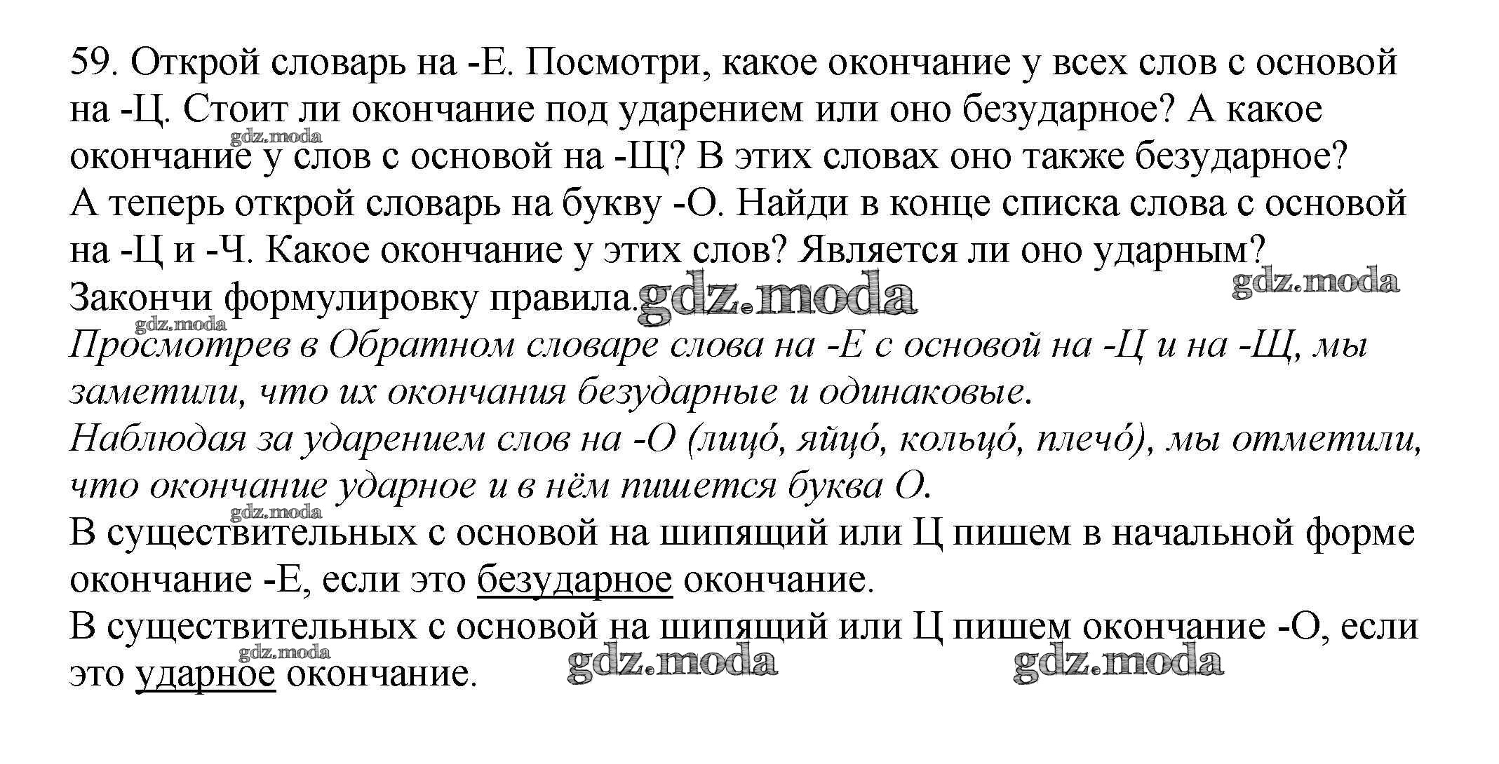 ОТВЕТ на задание № 59 Учебник по Русскому языку 3 класс Каленчук Перспективная начальная школа