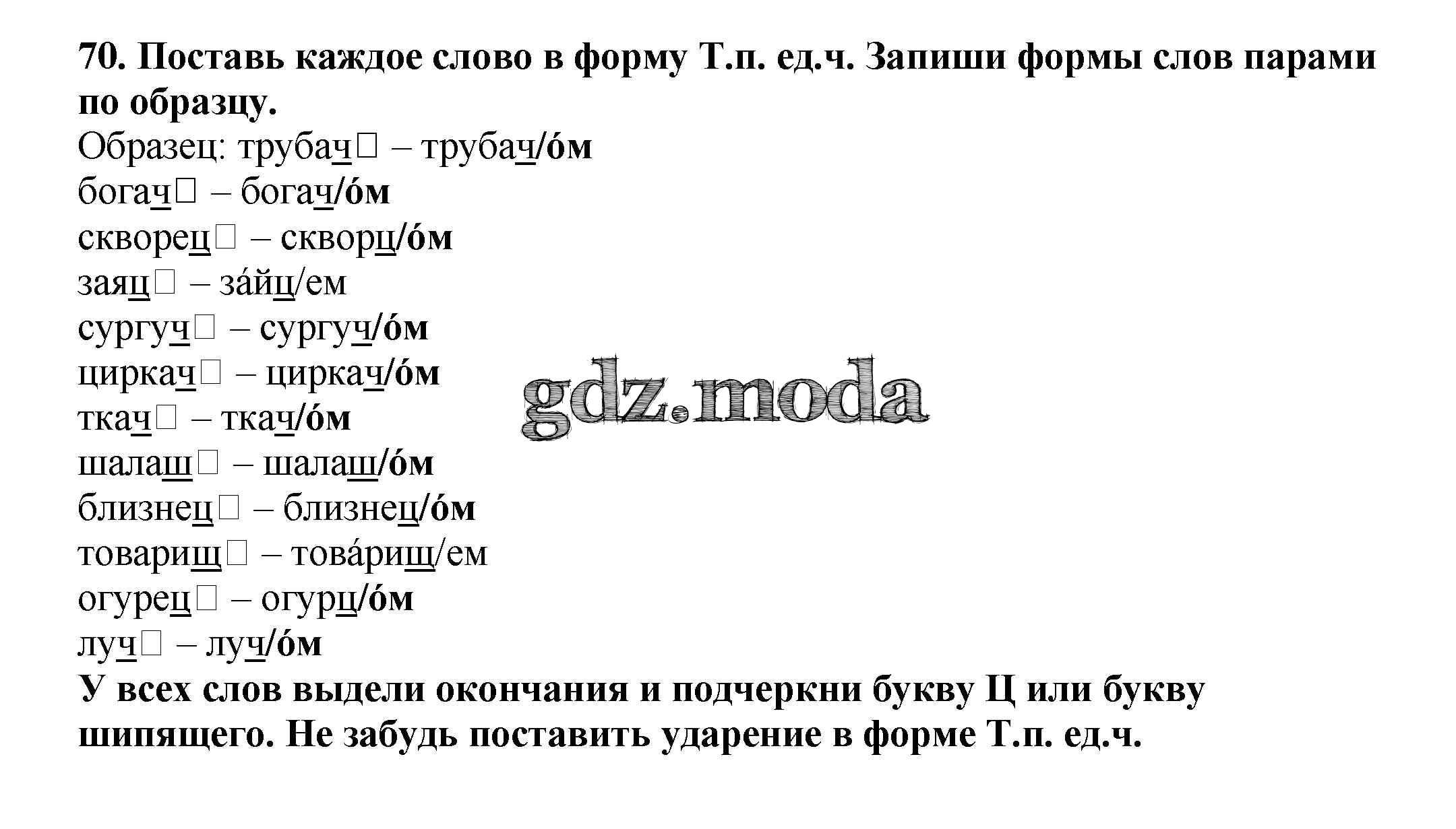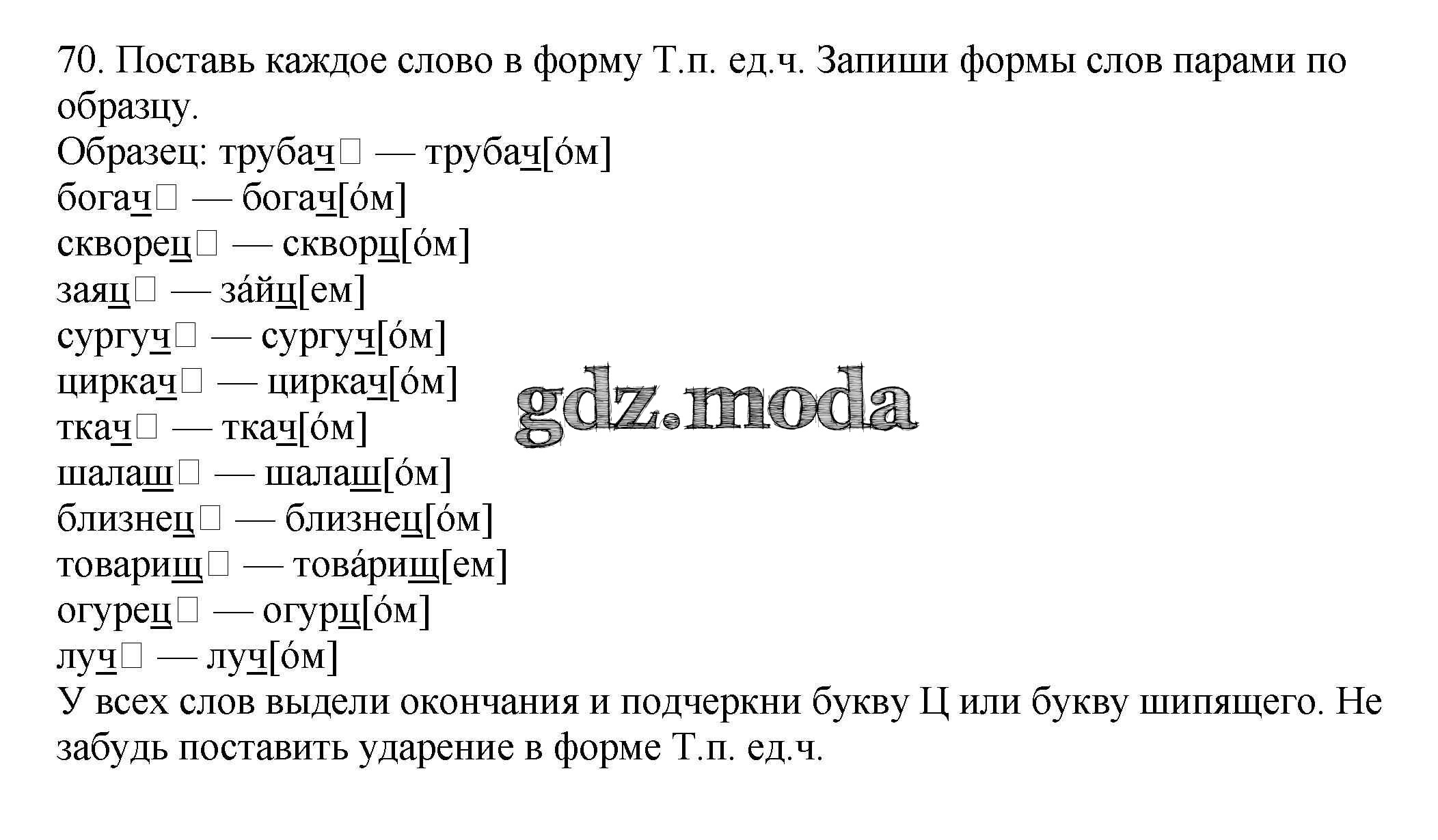 ОТВЕТ на задание № 70 Учебник по Русскому языку 3 класс Каленчук Перспективная начальная школа