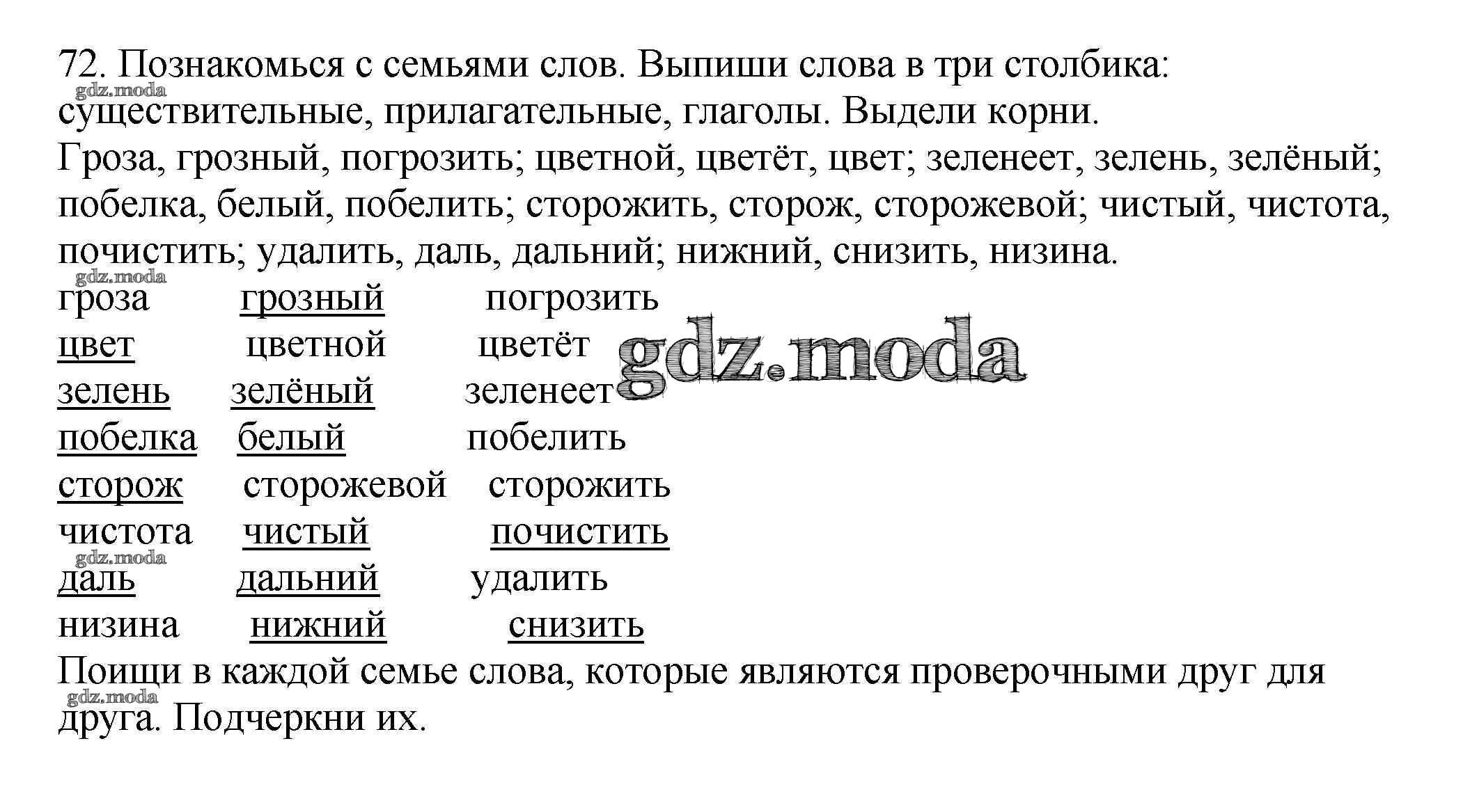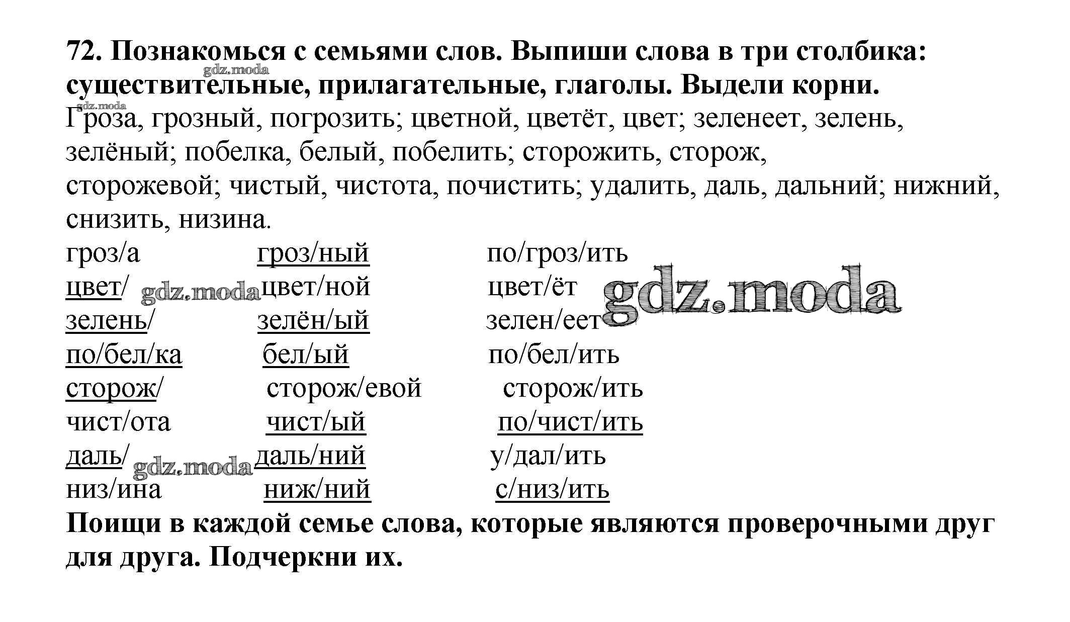 ОТВЕТ на задание № 72 Учебник по Русскому языку 3 класс Каленчук Перспективная начальная школа
