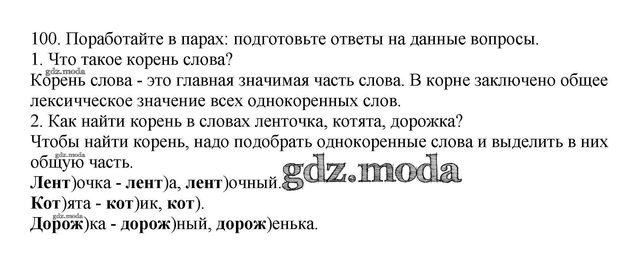 ОТВЕТ на задание № 100 Рабочая тетрадь по Русскому языку 3 класс Канакина Школа России