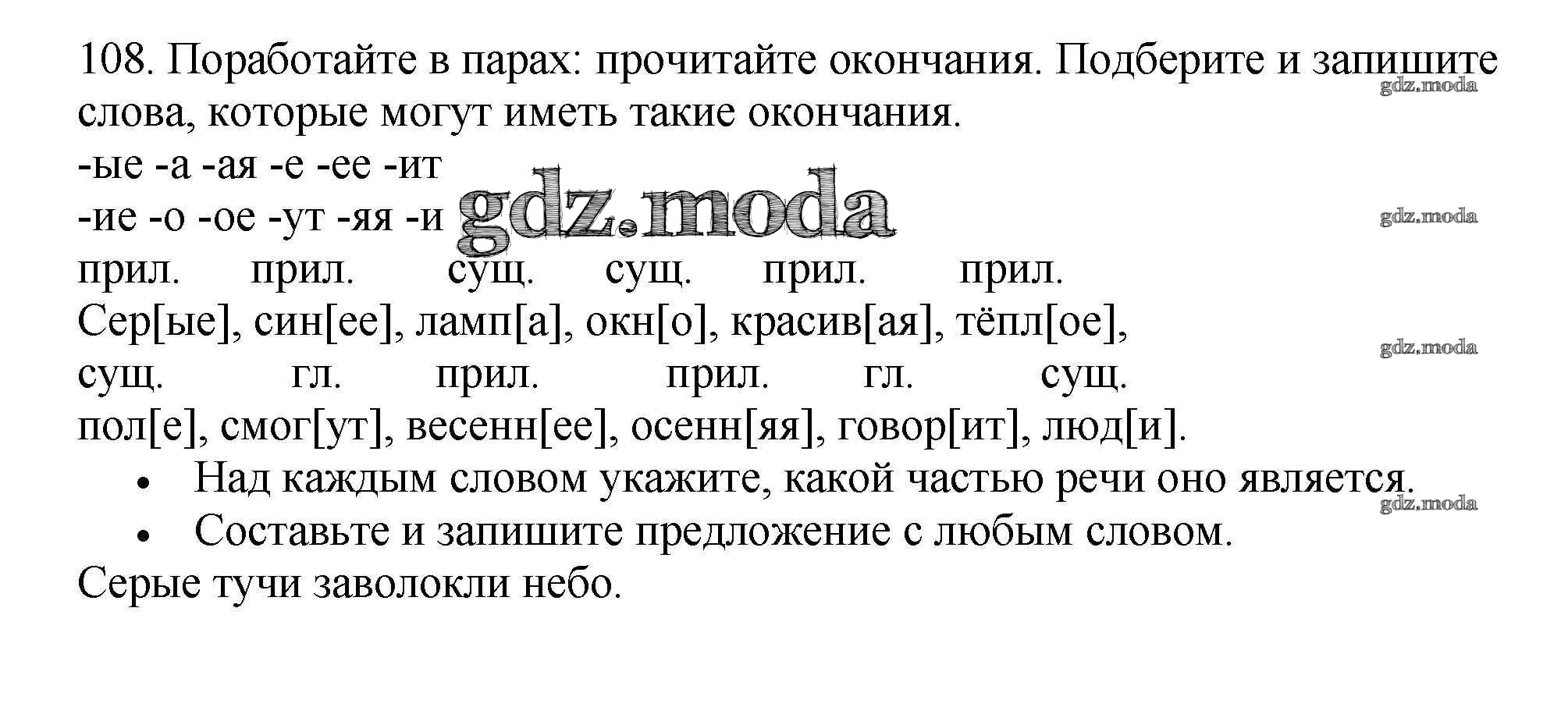 ОТВЕТ на задание № 108 Рабочая тетрадь по Русскому языку 3 класс Канакина Школа России