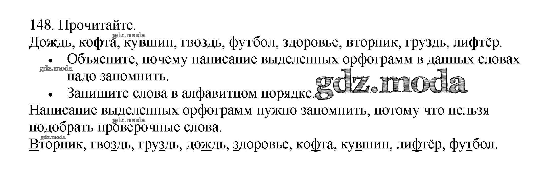 ОТВЕТ на задание № 148 Рабочая тетрадь по Русскому языку 3 класс Канакина Школа России