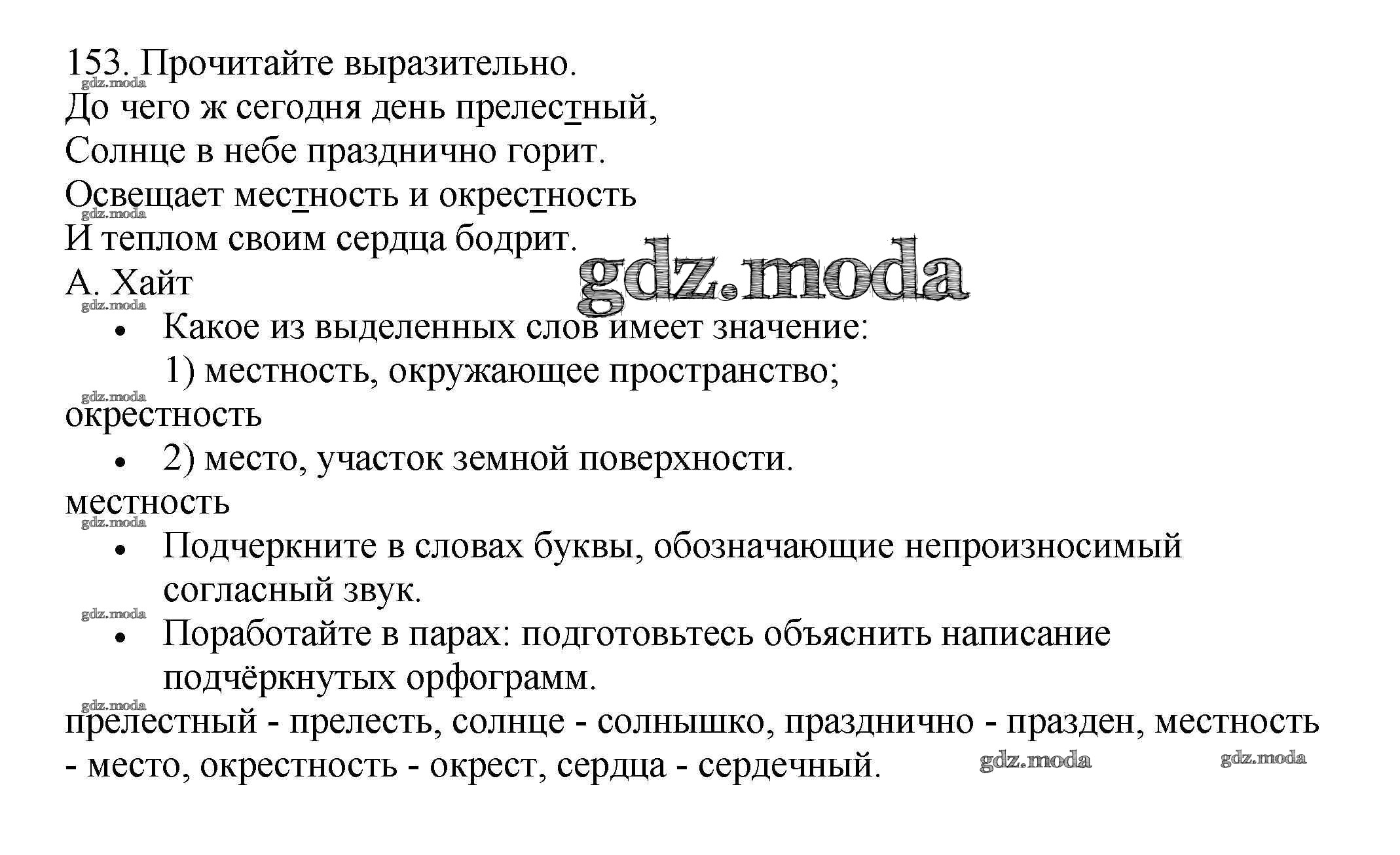 ОТВЕТ на задание № 153 Рабочая тетрадь по Русскому языку 3 класс Канакина Школа России