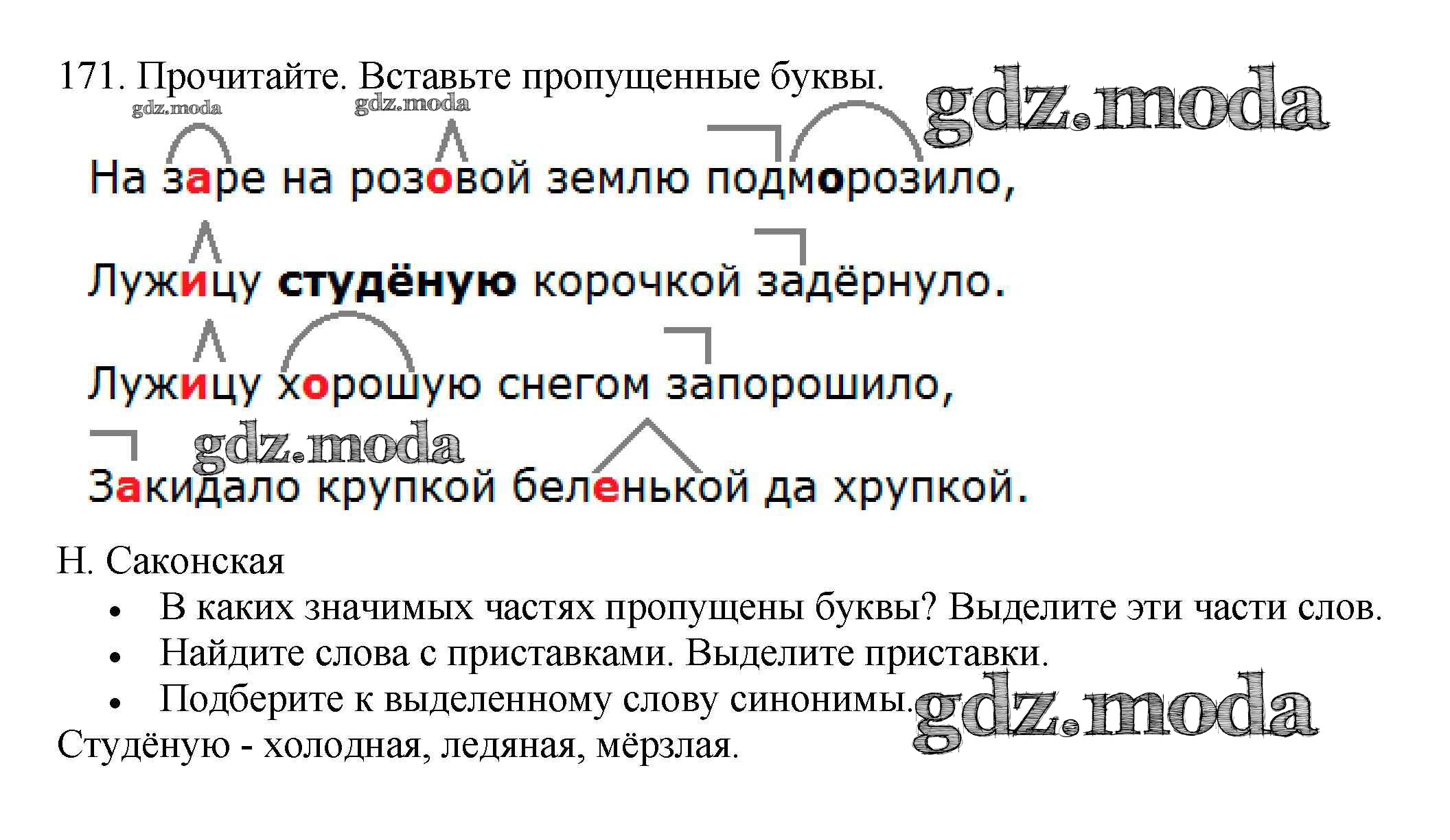ОТВЕТ на задание № 171 Рабочая тетрадь по Русскому языку 3 класс Канакина Школа России